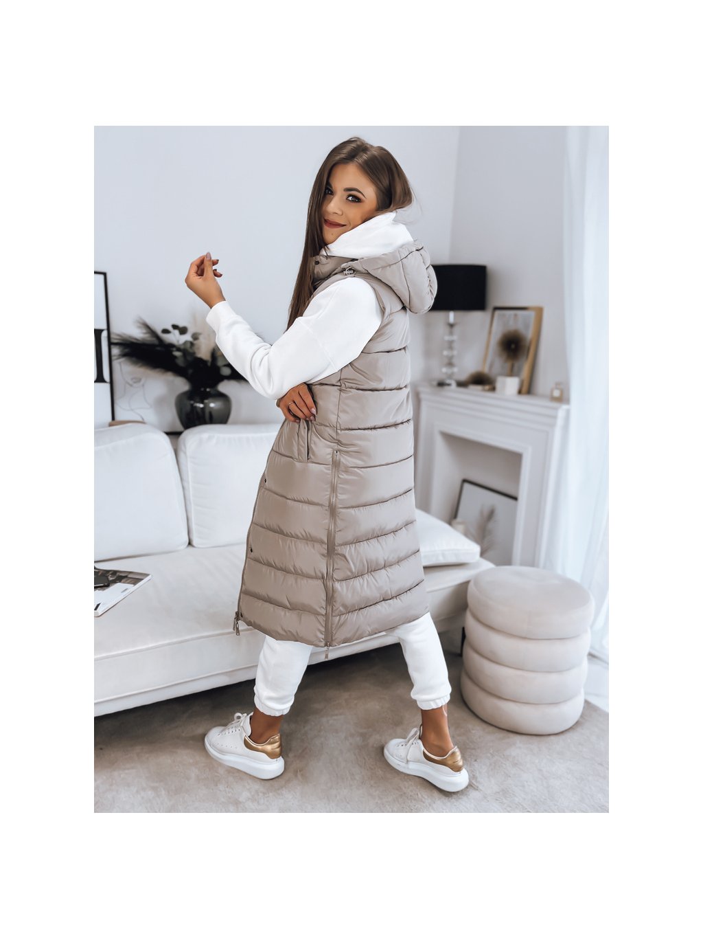 (VEL. 2XL) BÉŽOVÁ DLOUHÁ PROŠÍVANÁ VESTA TUTI
