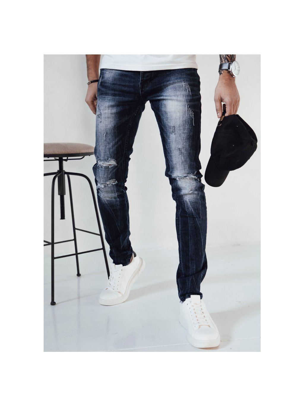 (VEL. 34) TMAVĚ MODRÉ PÁNSKÉ DŽÍNY S BÍLÝMI ODĚRKAMI