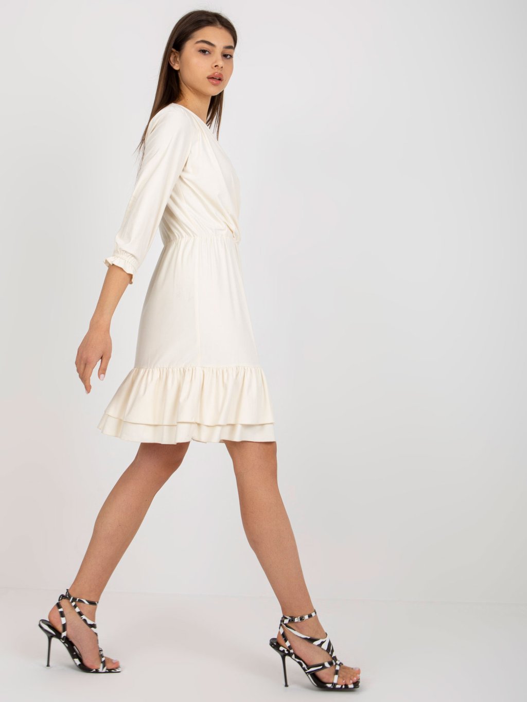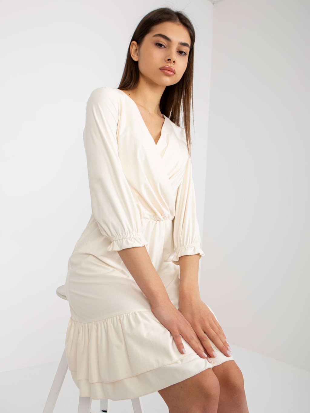 (VEL. 42) SVĚTLE BÉŽOVÉ KOKTEJLOVÉ ŠATY S 3/4 RUKÁVEM