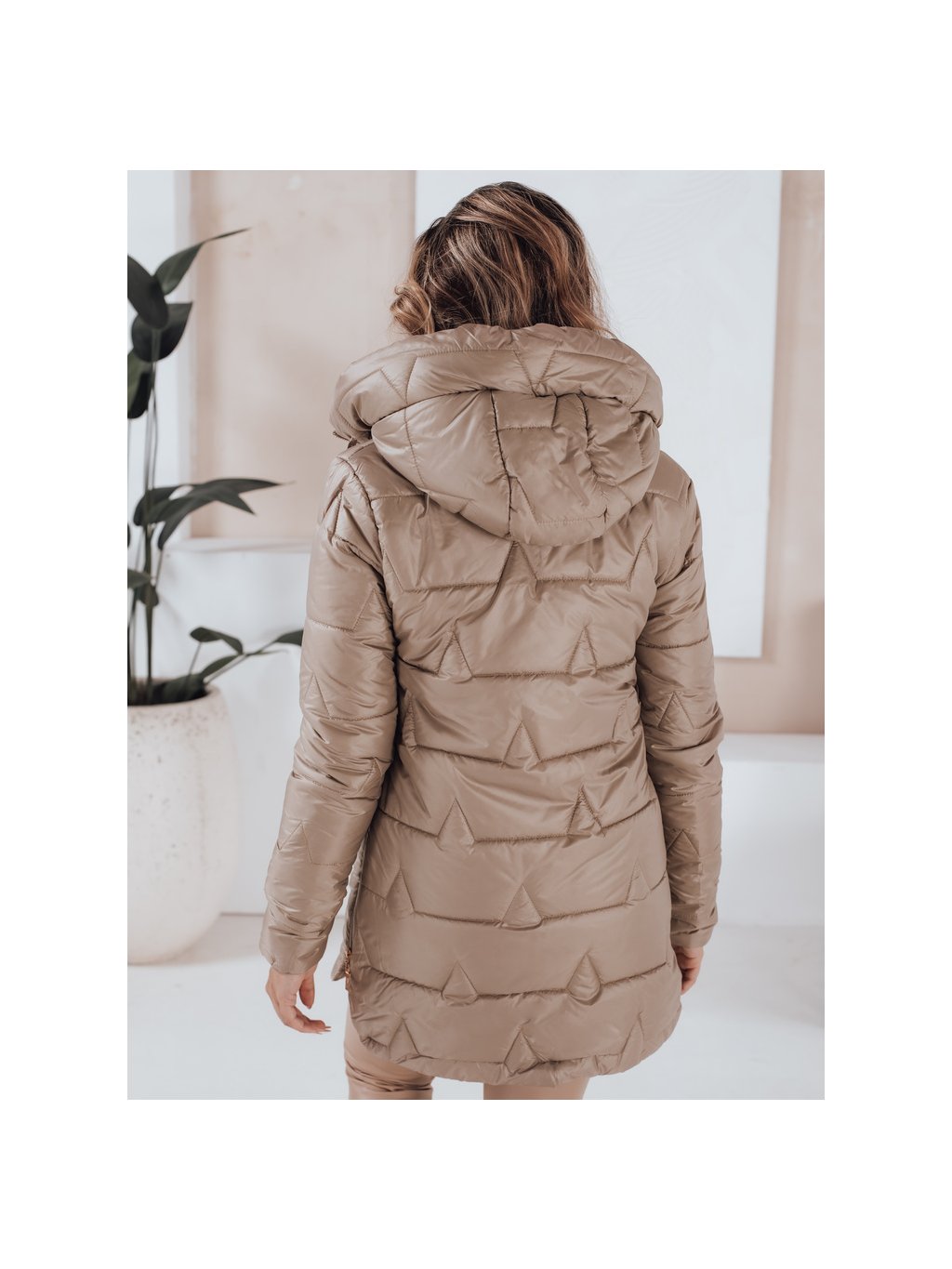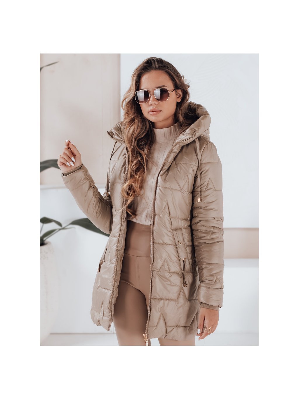 (VEL. L) CAMEL DÁMSKÁ PROŠÍVANÁ ZIMNÍ BUNDA S KAPUCÍ