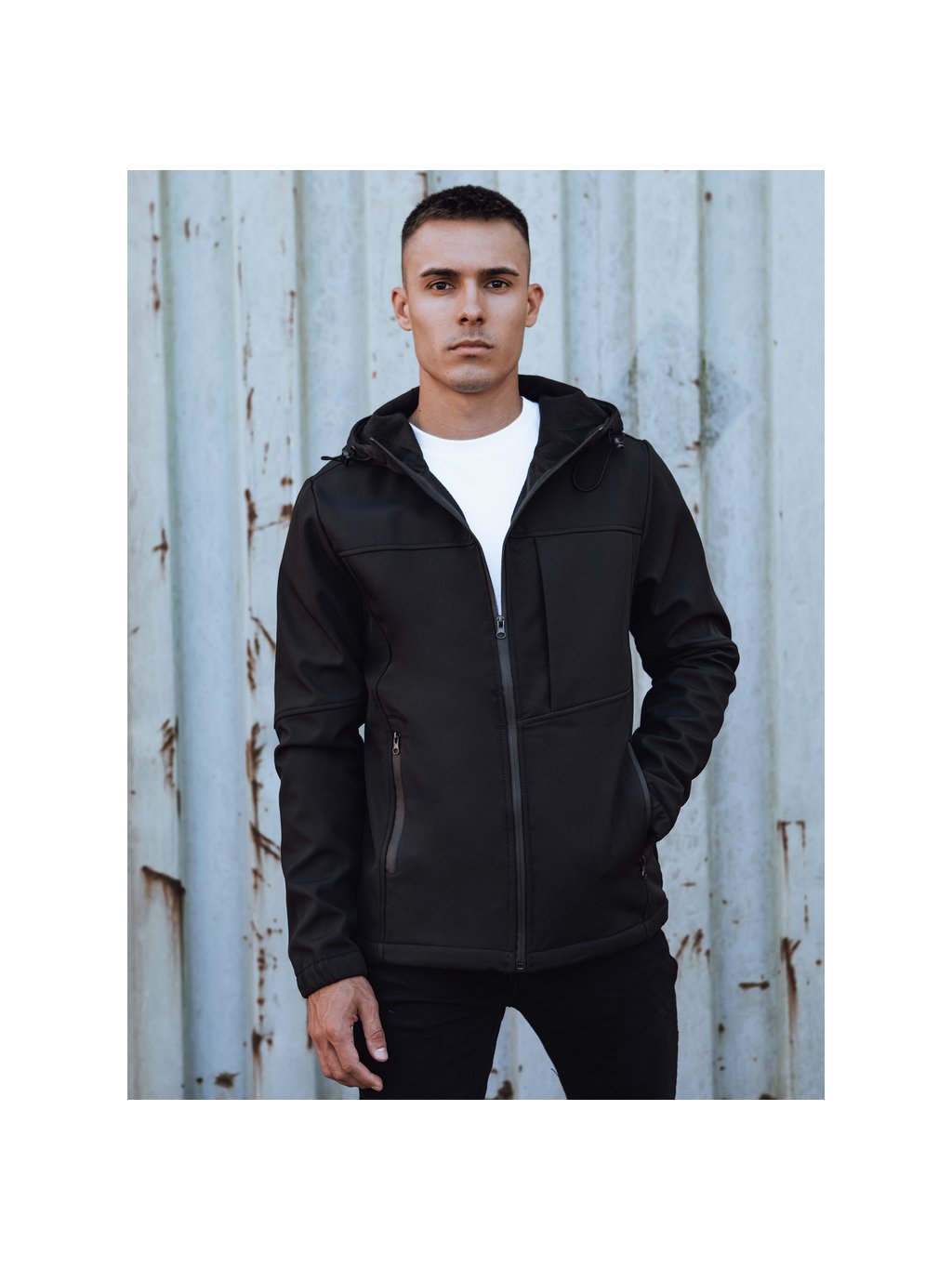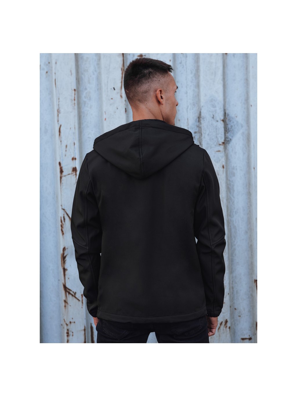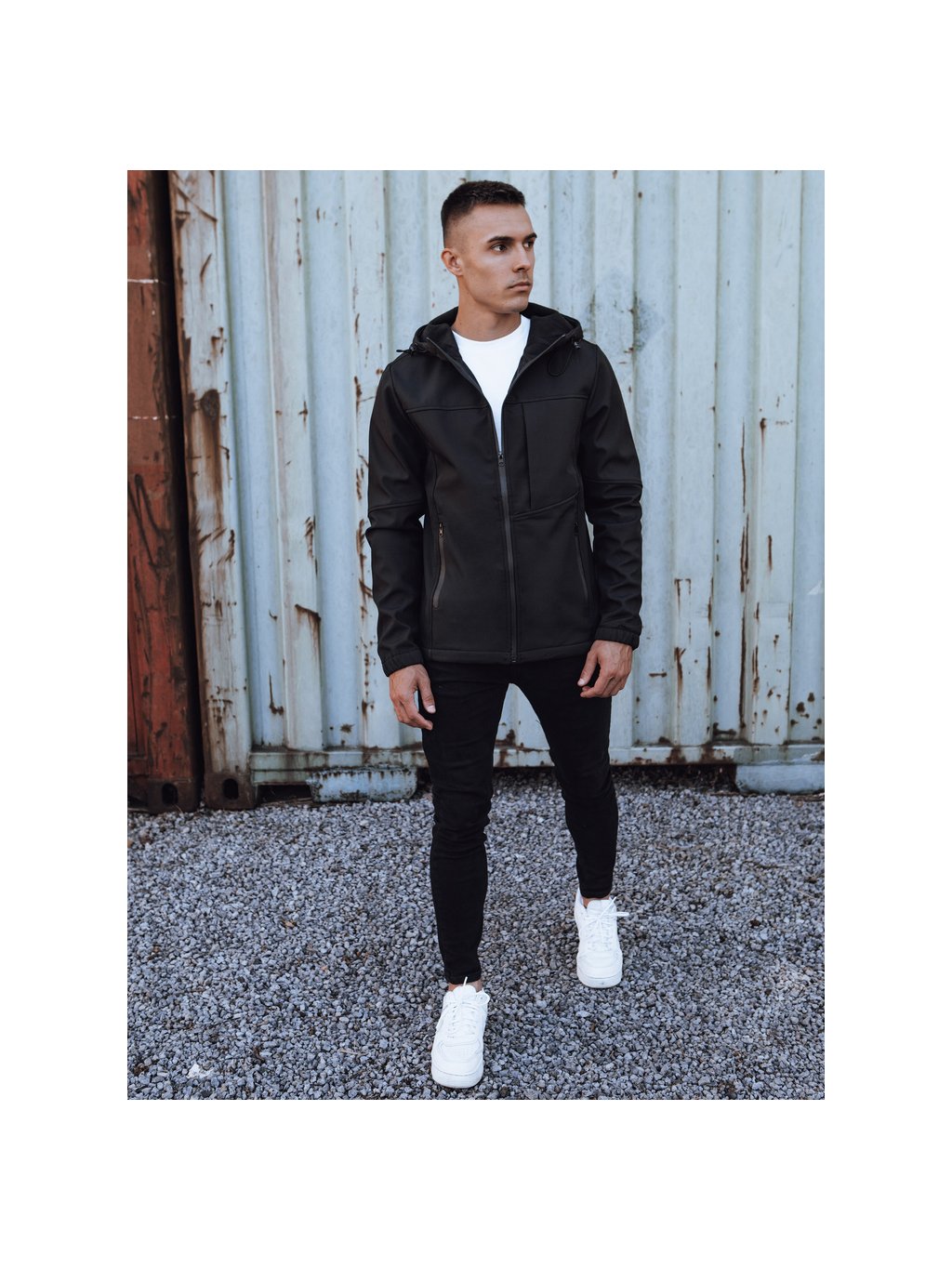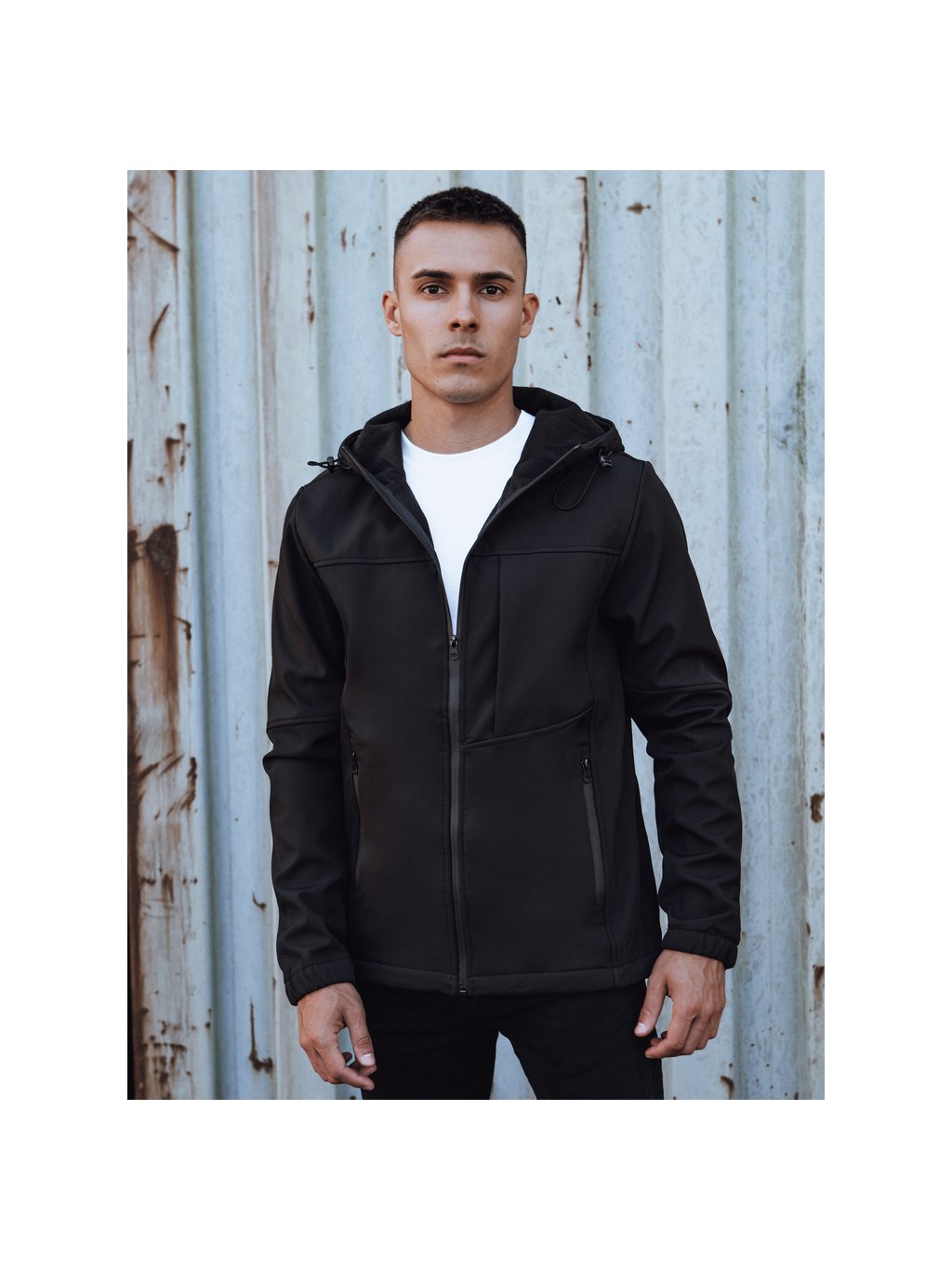 (VEL. L) ČERNÁ PÁNSKÁ SOFTSHELLOVÁ BUNDA S KAPUCÍ