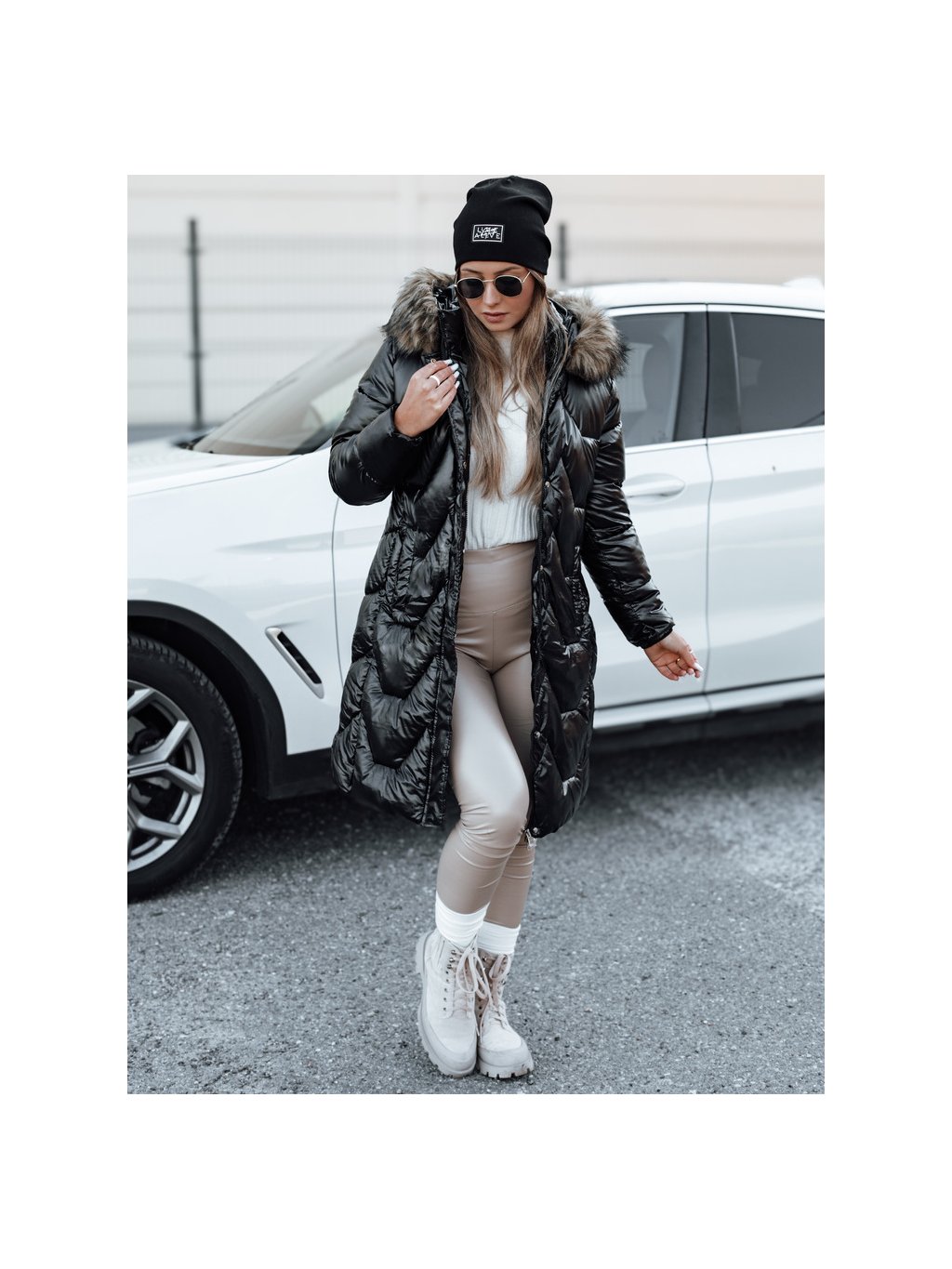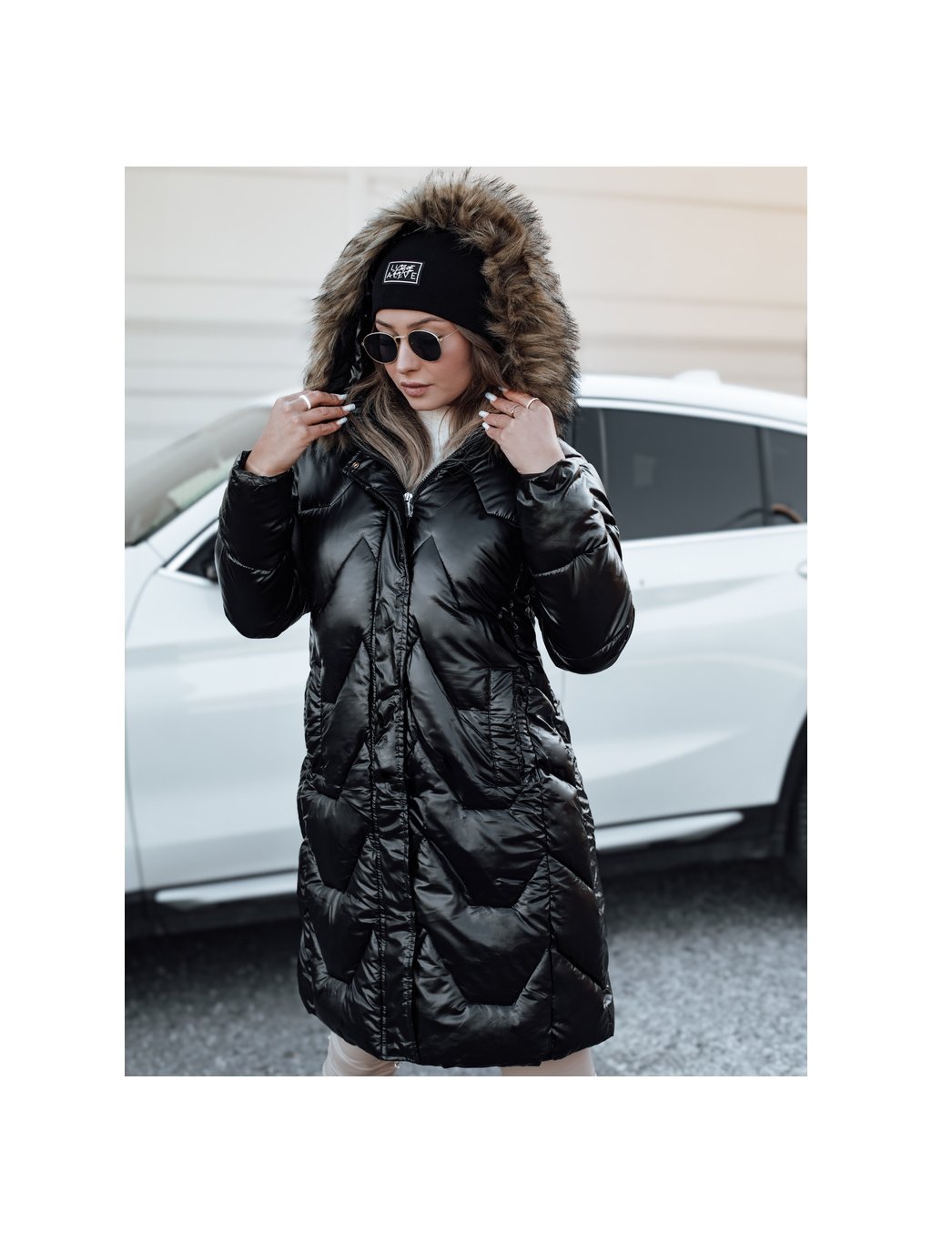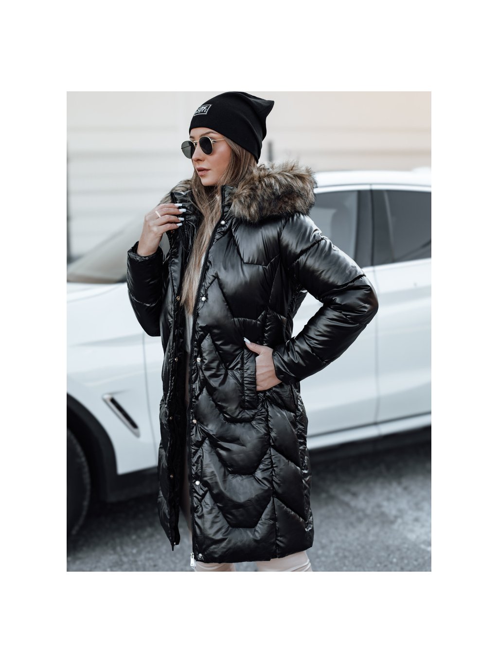 (VEL. L) DÁMSKÁ DLOUHÁ ČERNÁ PROŠÍVANÁ BUNDA ELECIO