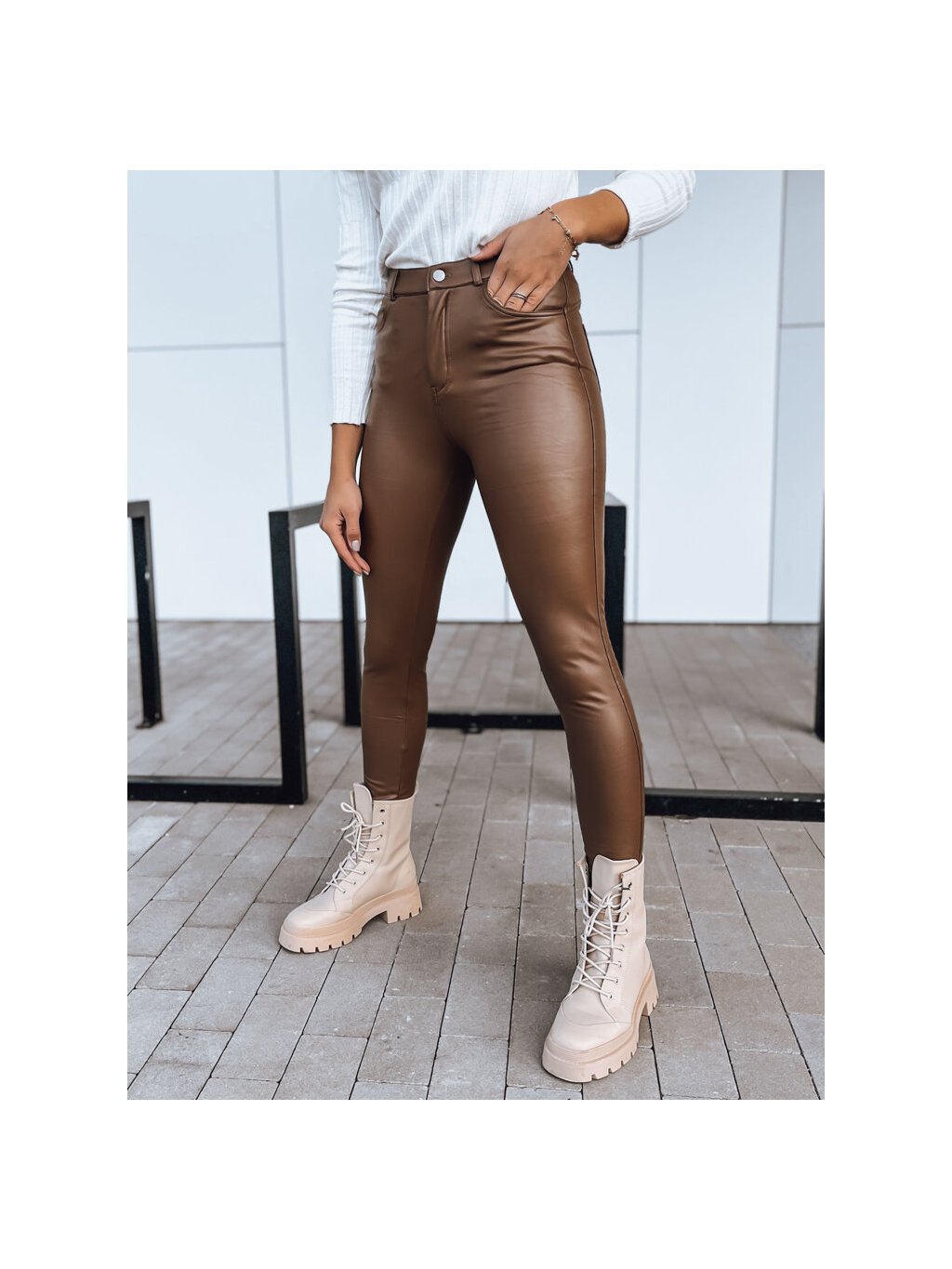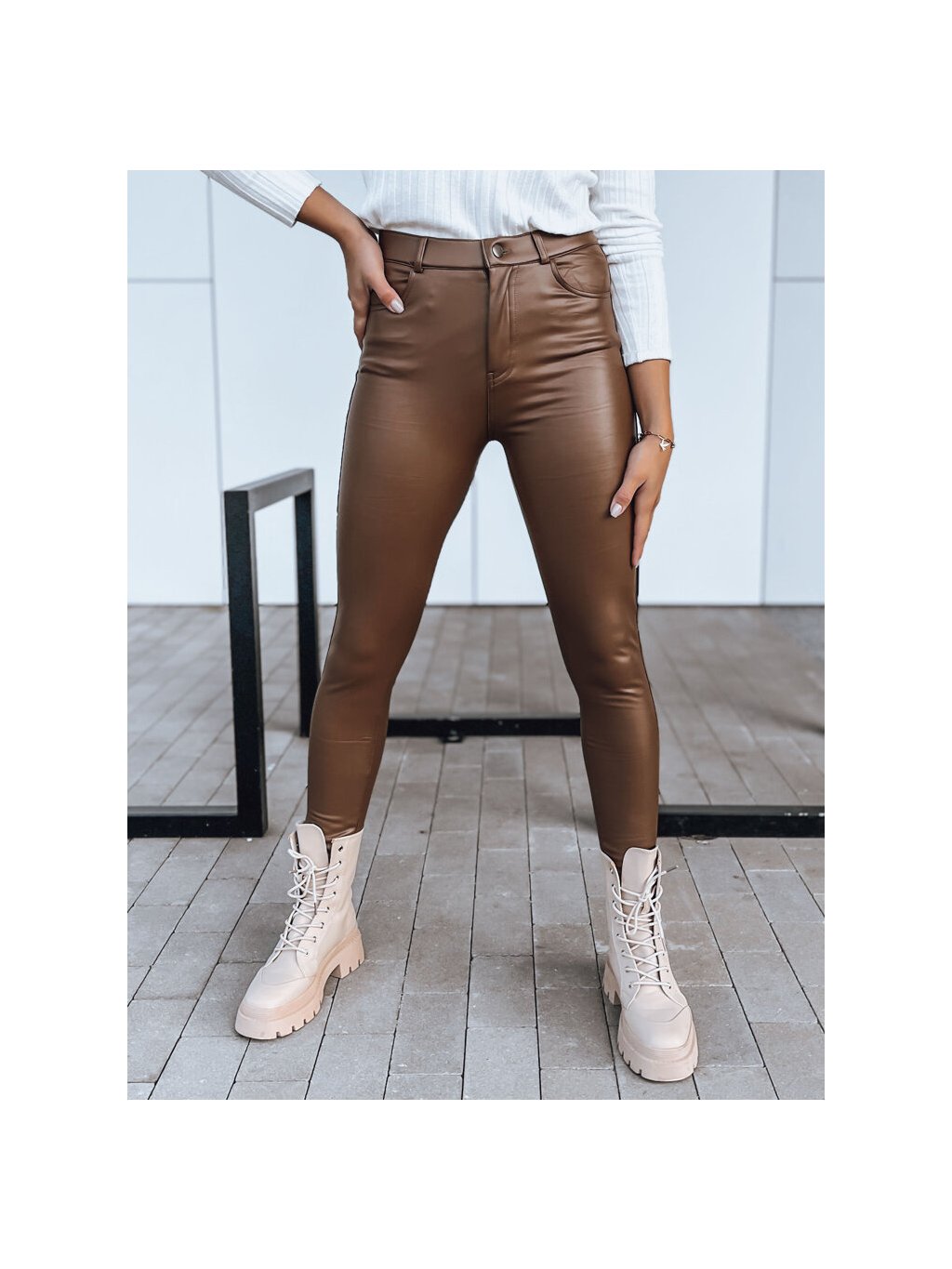 (VEL. L) HNĚDÉ KOŽENKOVÉ KALHOTY TOURMALIN