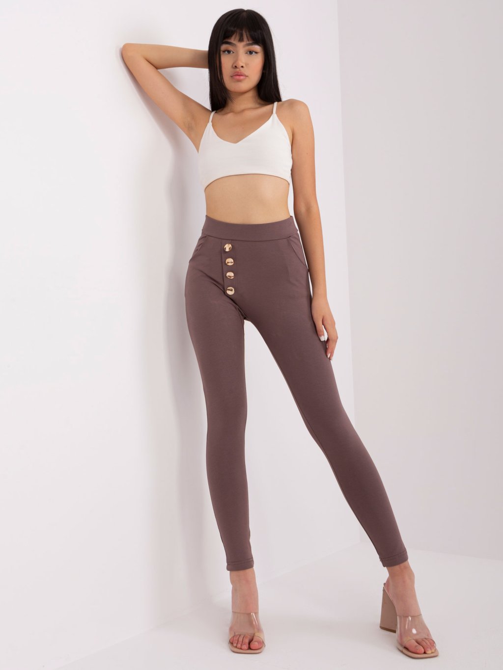 (VEL. L) HNĚDÉ LEGÍNY S VYSOKÝM PASEM A OZDOBNÝMI KNOFLÍKY