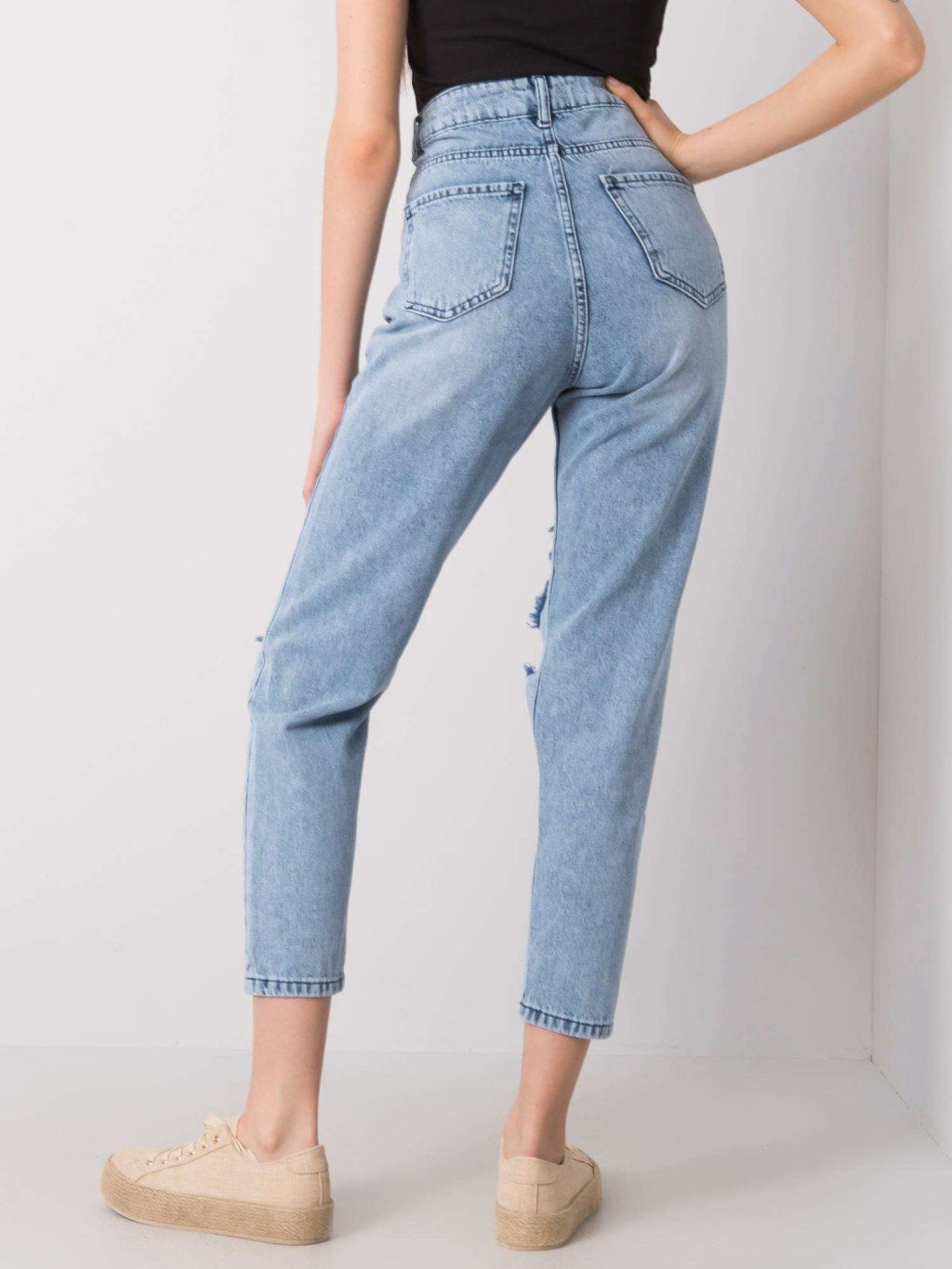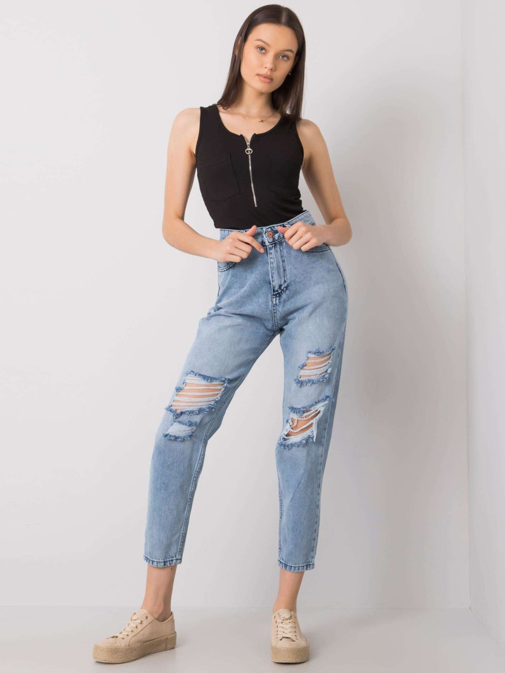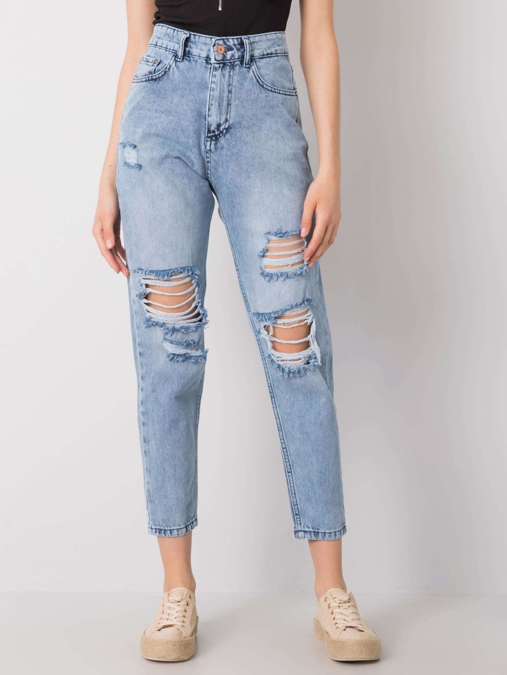 (VEL. L) MODRÉ DÁMSKÉ DŽÍNY S DĚROVÁNÍM