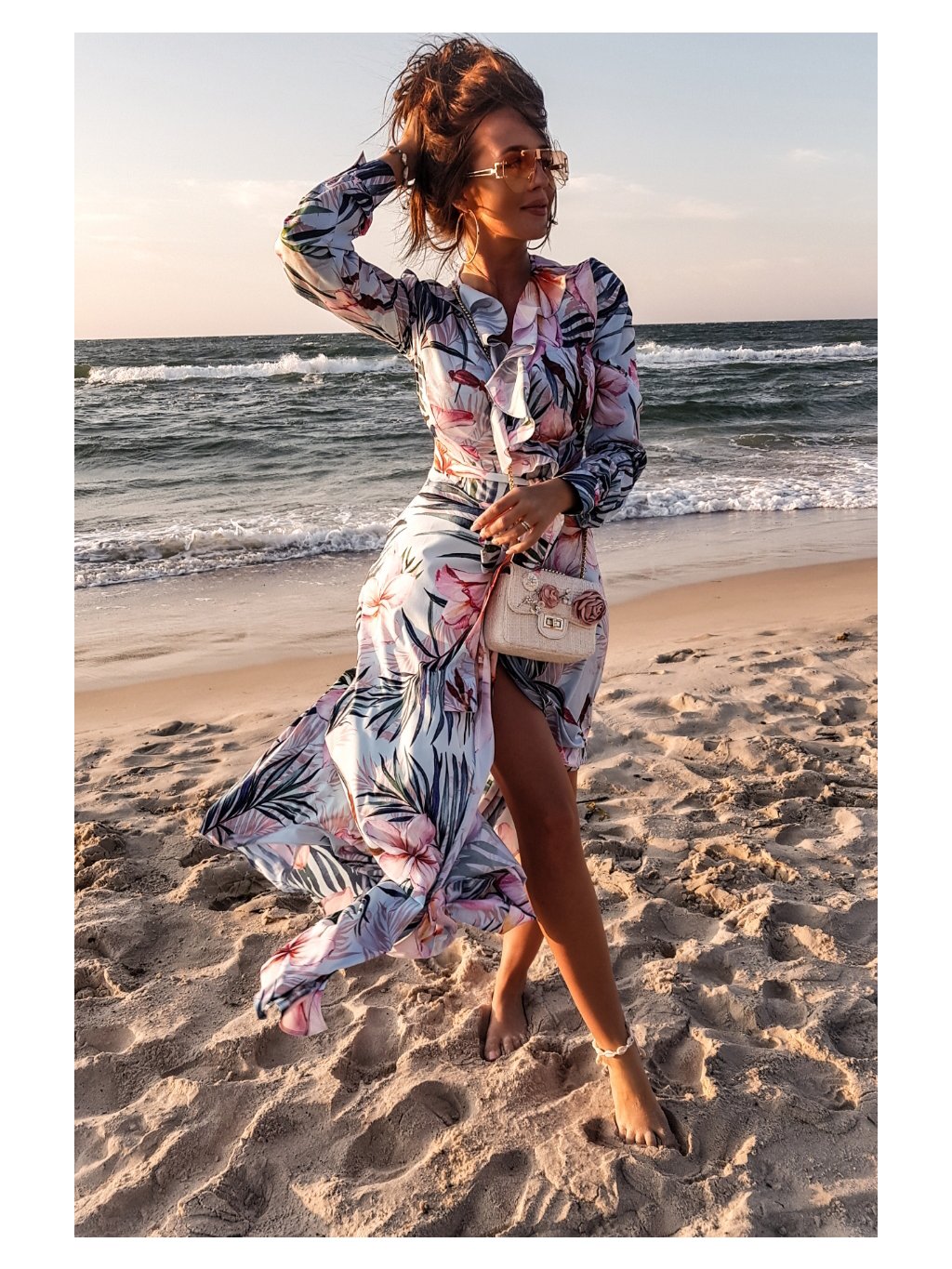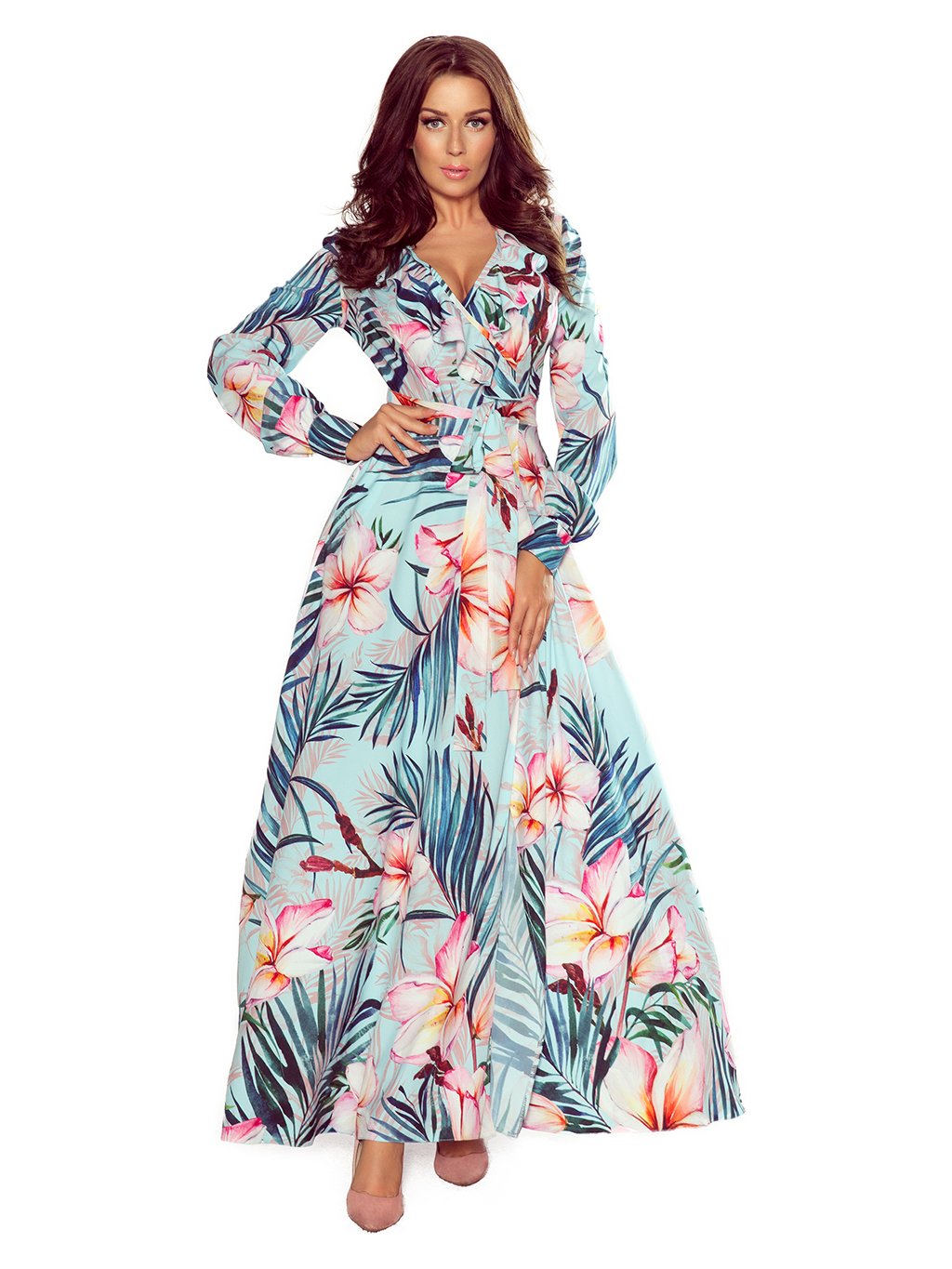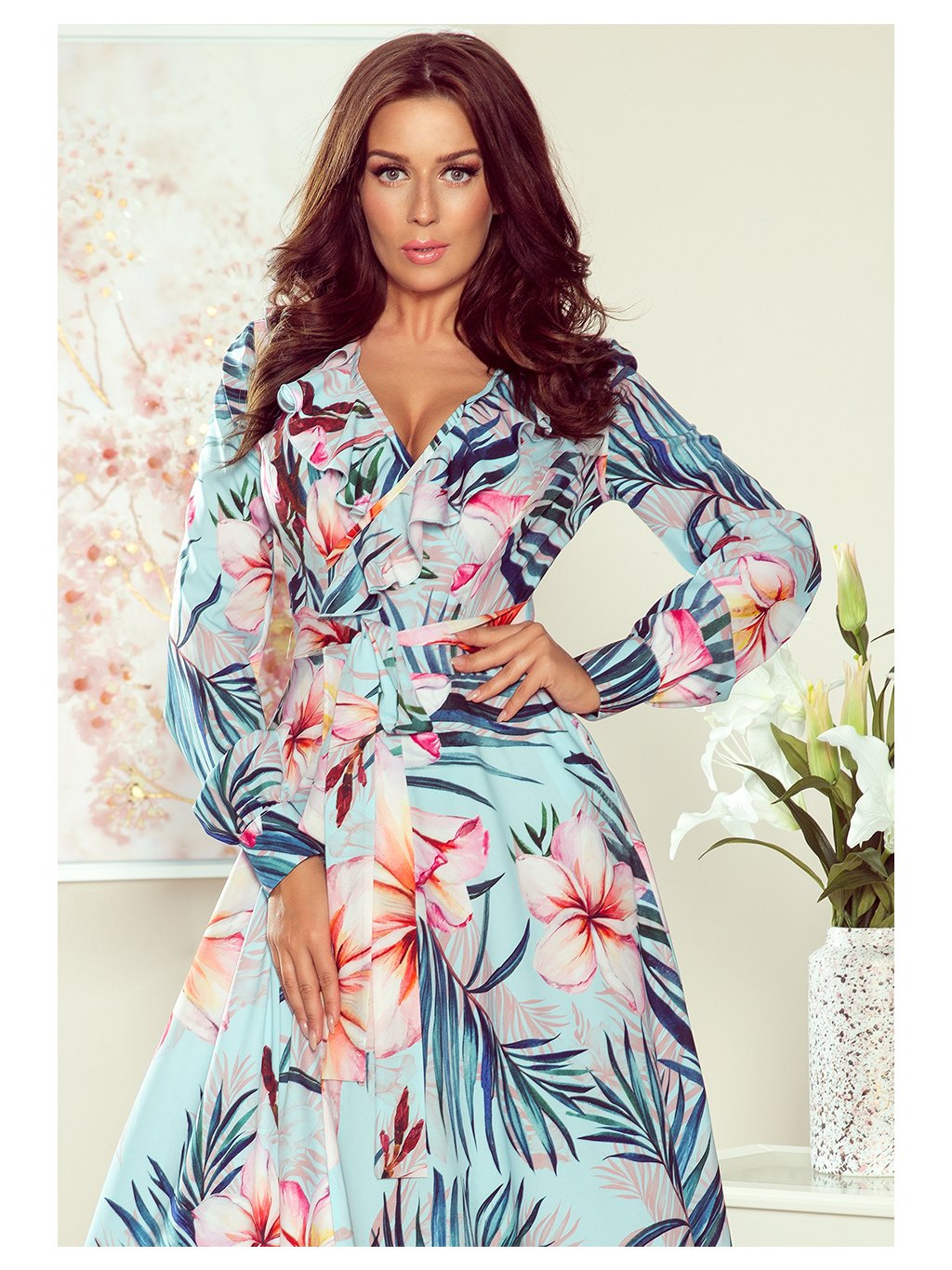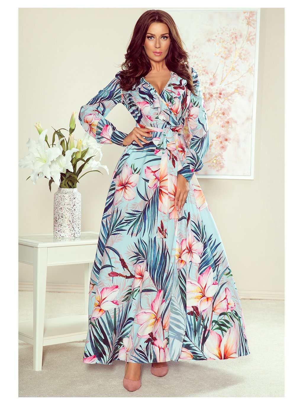 (VEL. L) MODRÉ MAXI ŠATY S KVĚTINOVÝM VZOREM UMA