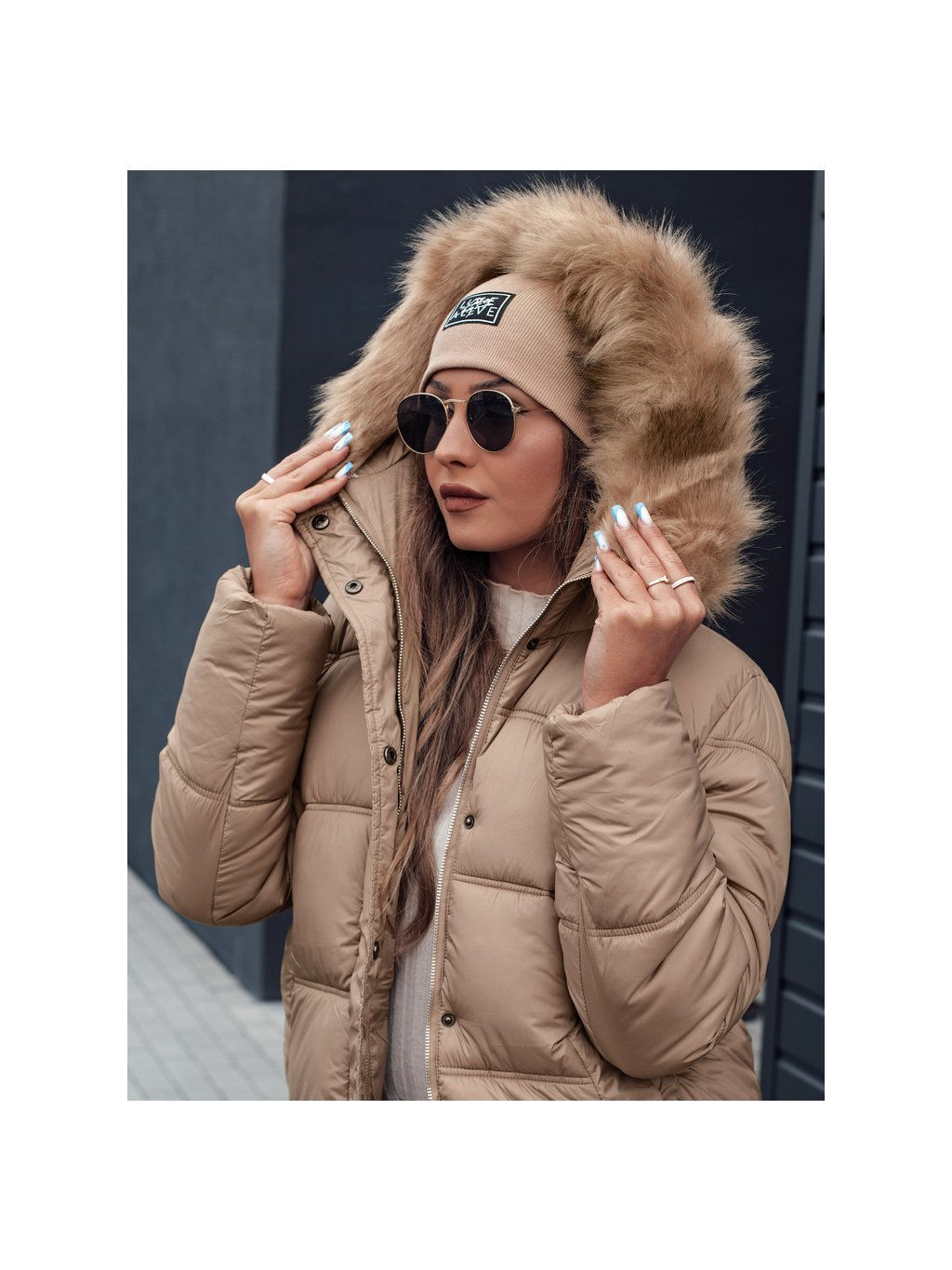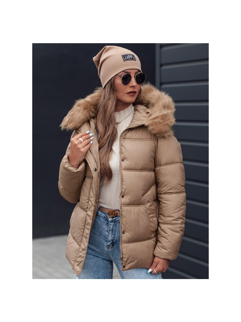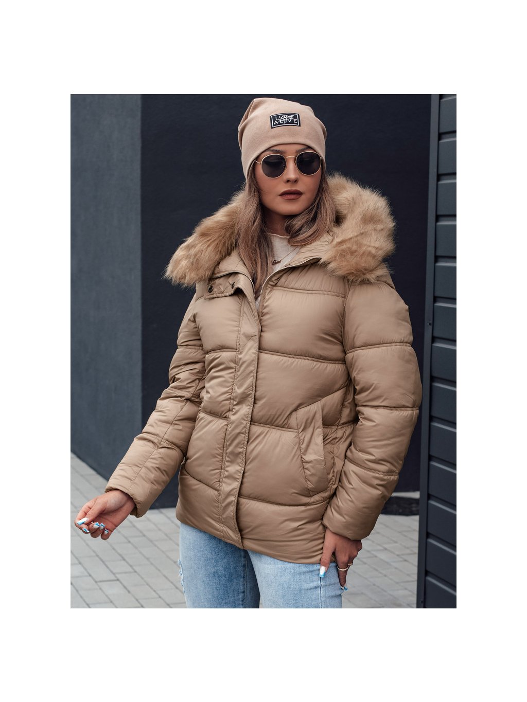 (VEL. M) BÉŽOVÁ DÁMSKÁ ZIMNÍ PROŠÍVANÁ BUNDA S KAPUCÍ NORDKOLL