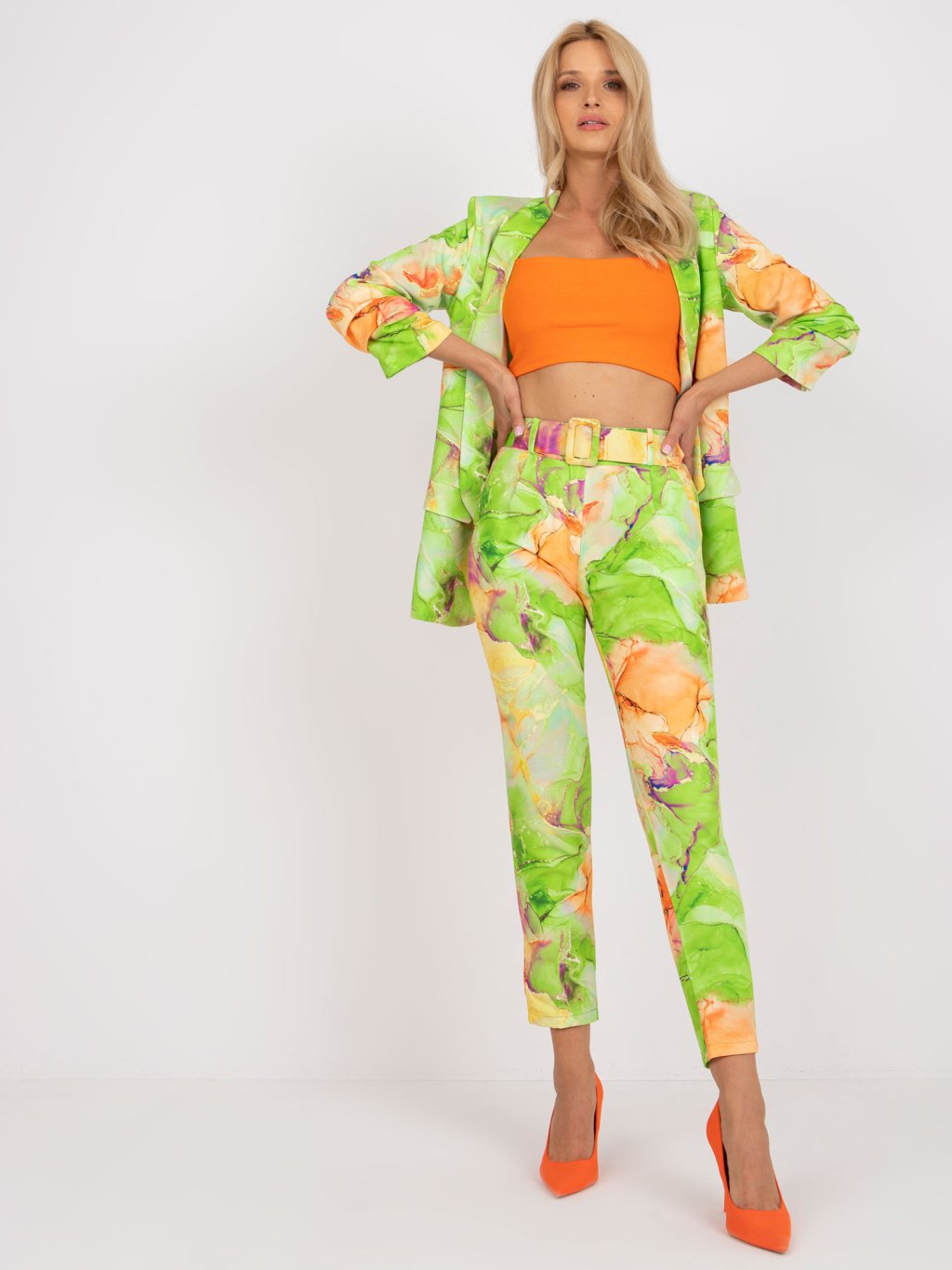 (VEL. M) SVĚTLE ZELENÉ DÁMSKÉ VZOROVANÉ KALHOTY S PÁSKEM