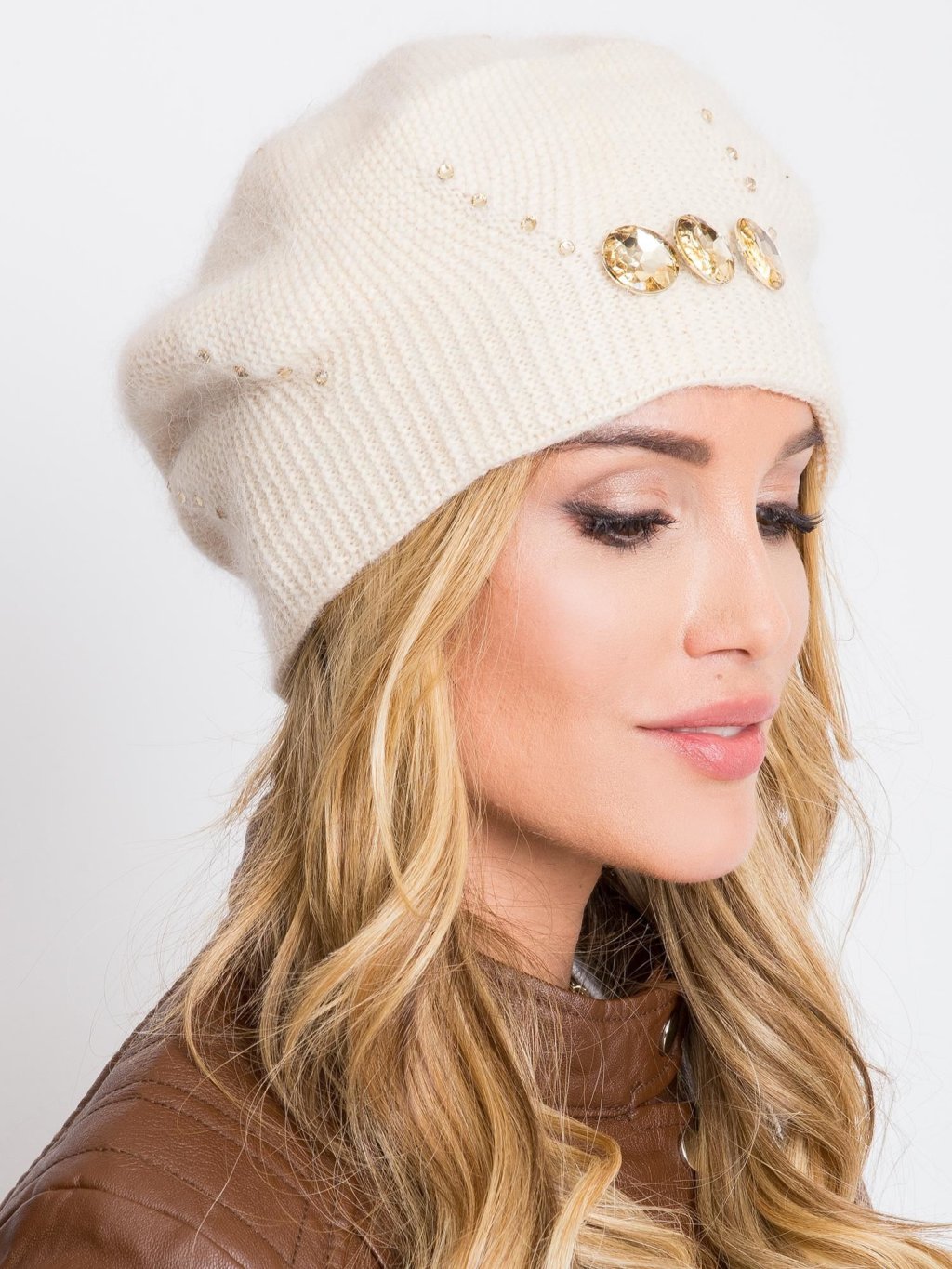 (VEL. ONE SIZE) ZDOBENÝ DÁMSKÝ SVĚTLE-BÉŽOVÝ BARET