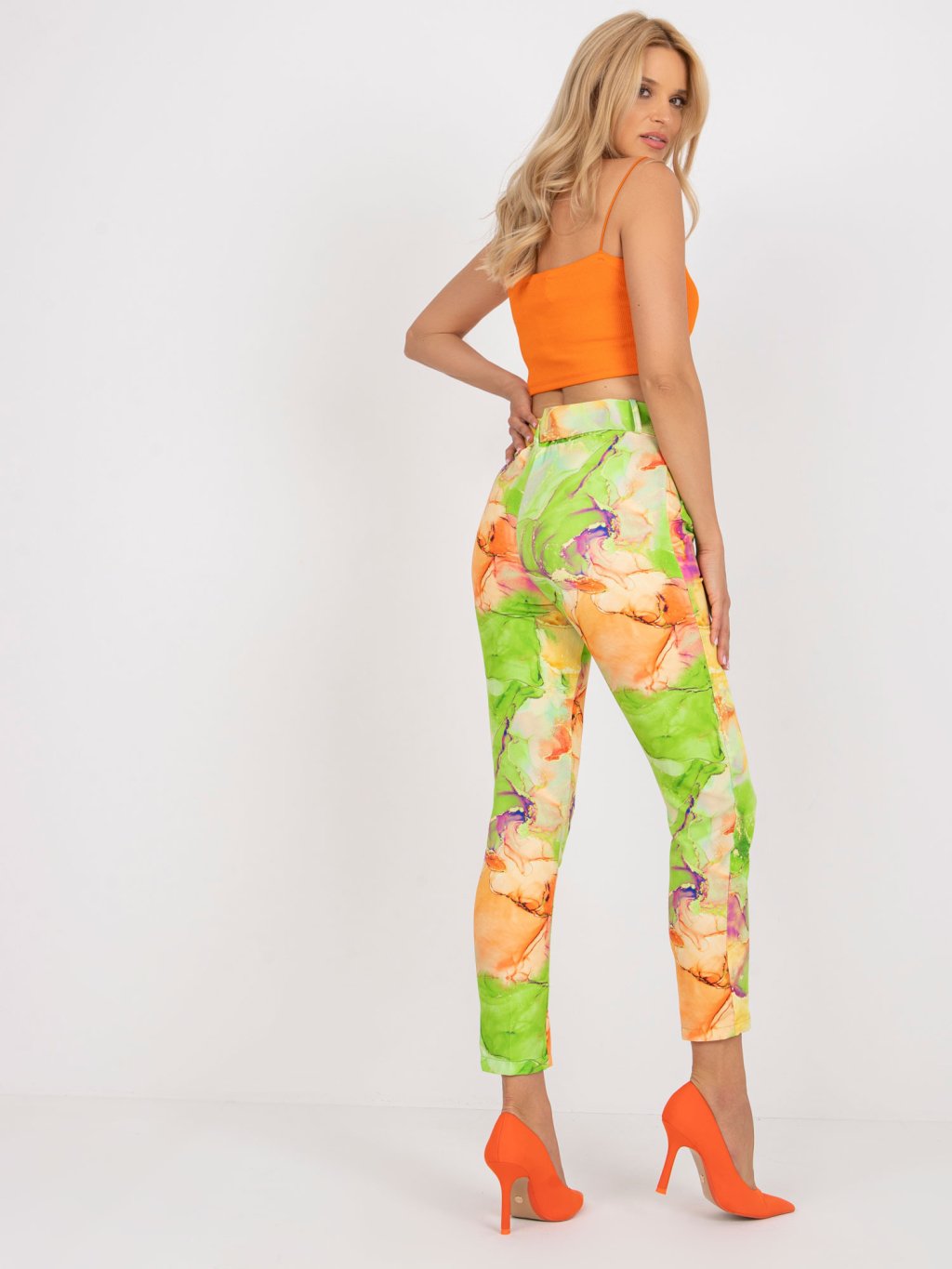 (VEL. S) SVĚTLE ZELENÉ DÁMSKÉ VZOROVANÉ KALHOTY S PÁSKEM