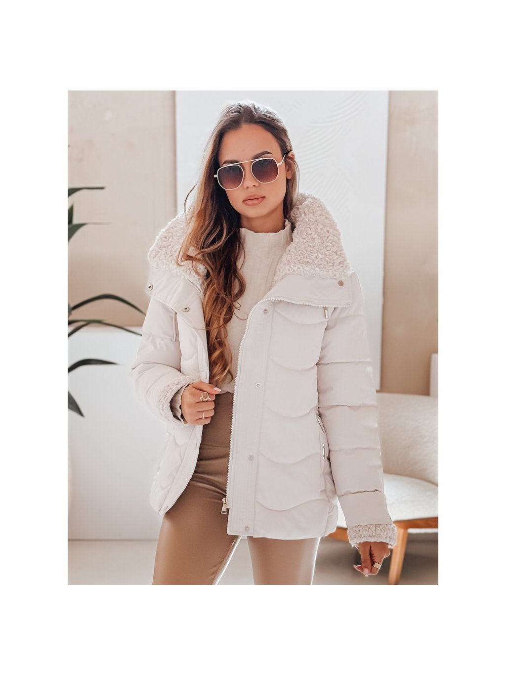 (VEL. XL) BÍLÁ DÁMSKÁ ZIMNÍ PROŠÍVANÁ BUNDA WARMMISS S KOŽEŠINOVÝM LÍMCEM