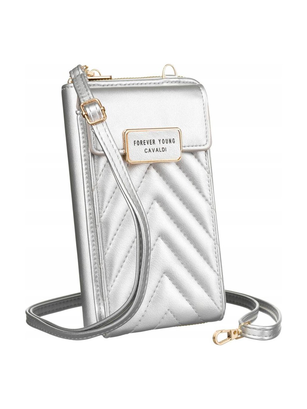 4U CAVALDI STŘÍBRNÁ PROŠÍVANÁ CROSSBODY PENĚŽENKA M677