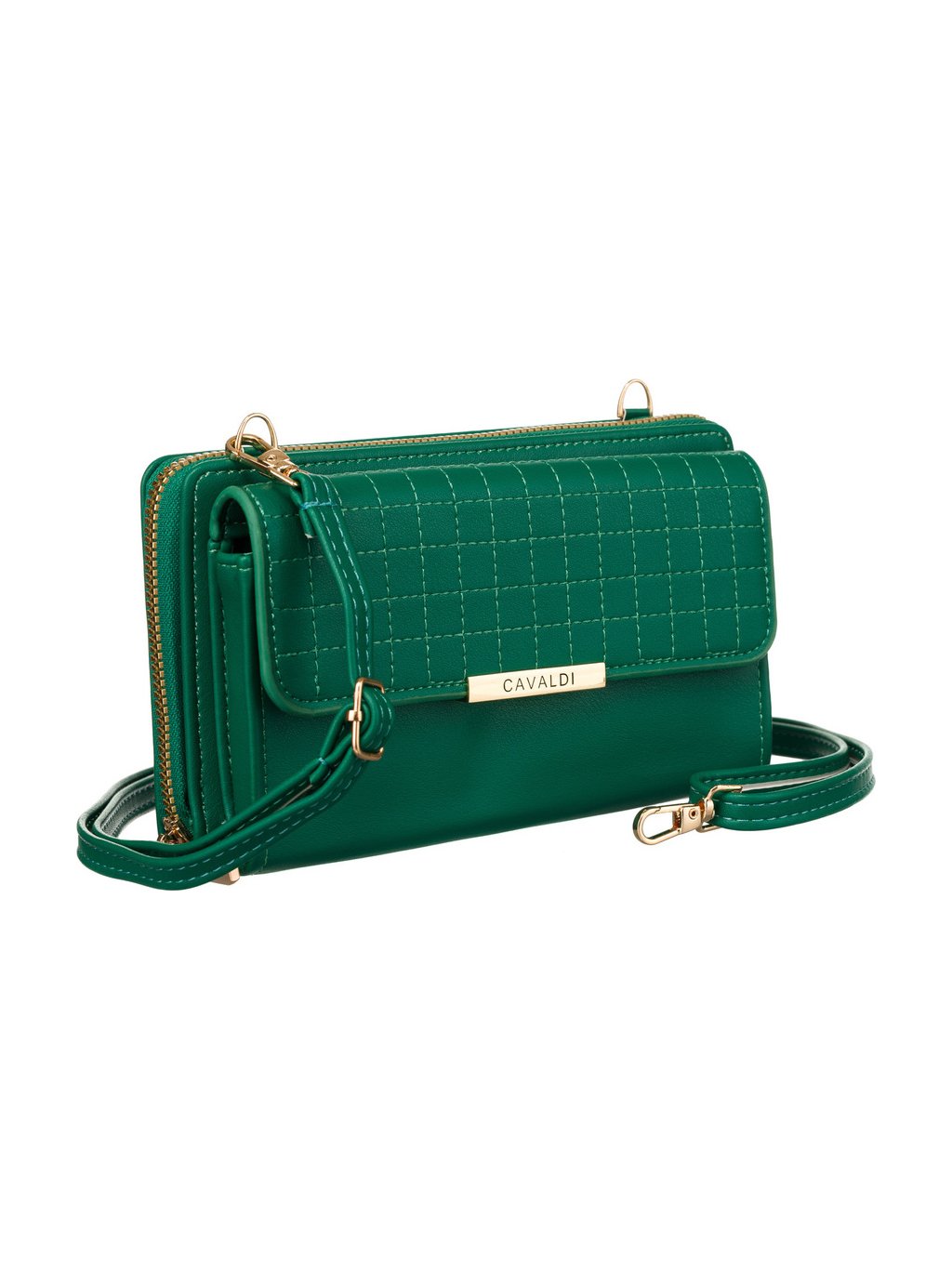 4U CAVALDI TMAVĚ ZELENÁ PROŠÍVANÁ VELKÁ PENĚŽENKA S ODNÍMATELNÝM POPRUHEM M832
