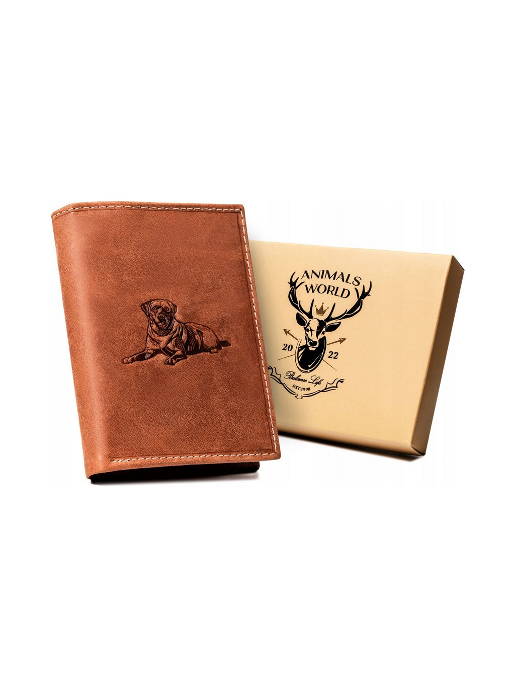 ALWAYS WILD HNĚDÁ KOŽENÁ PENĚŽENKA S RAŽBOU PSA A153
