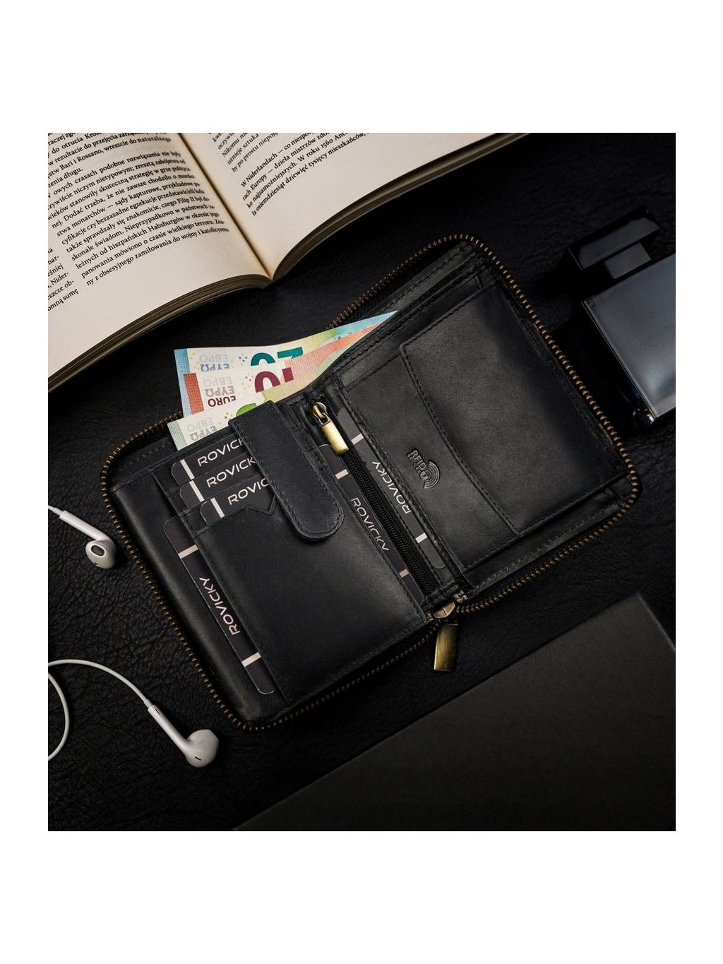 • uvnitř je 6 míst na karty, 5 míst na větší doklady, kapsa na mince na patent, 2 přihrádky na bankovky