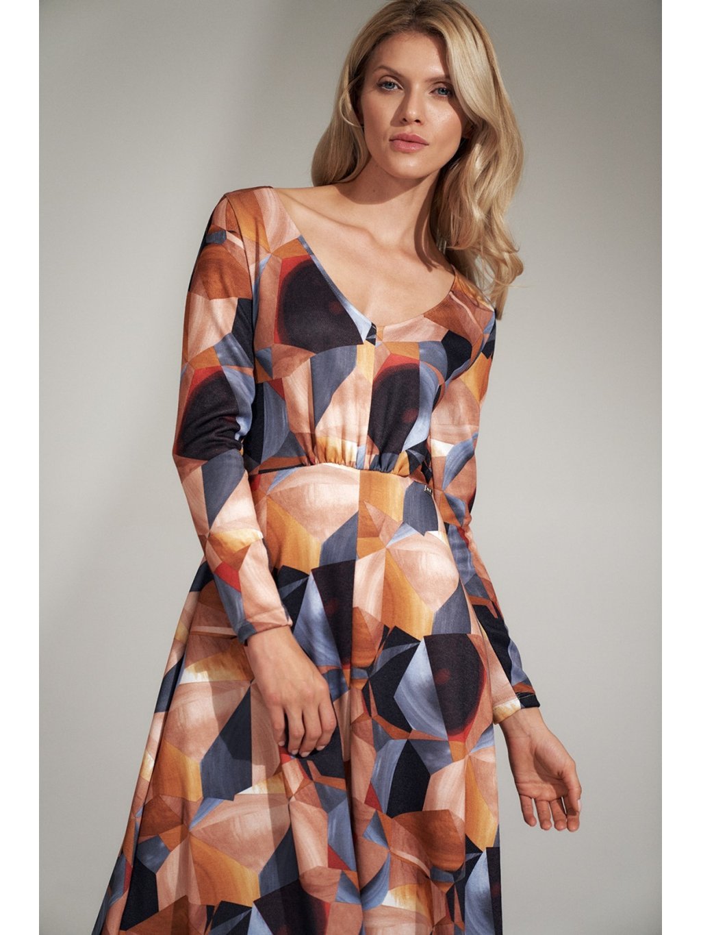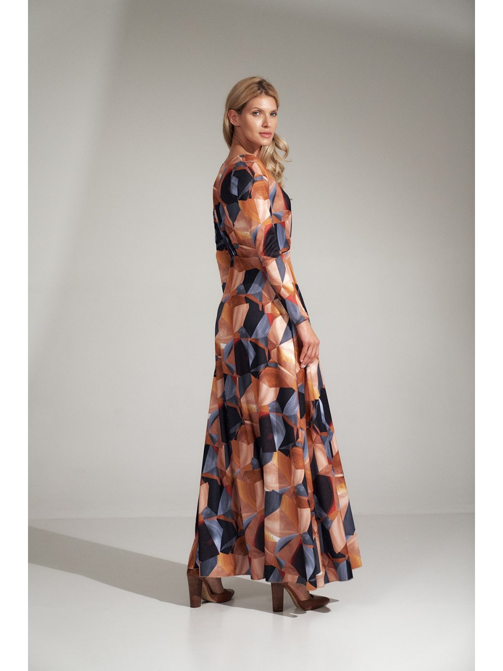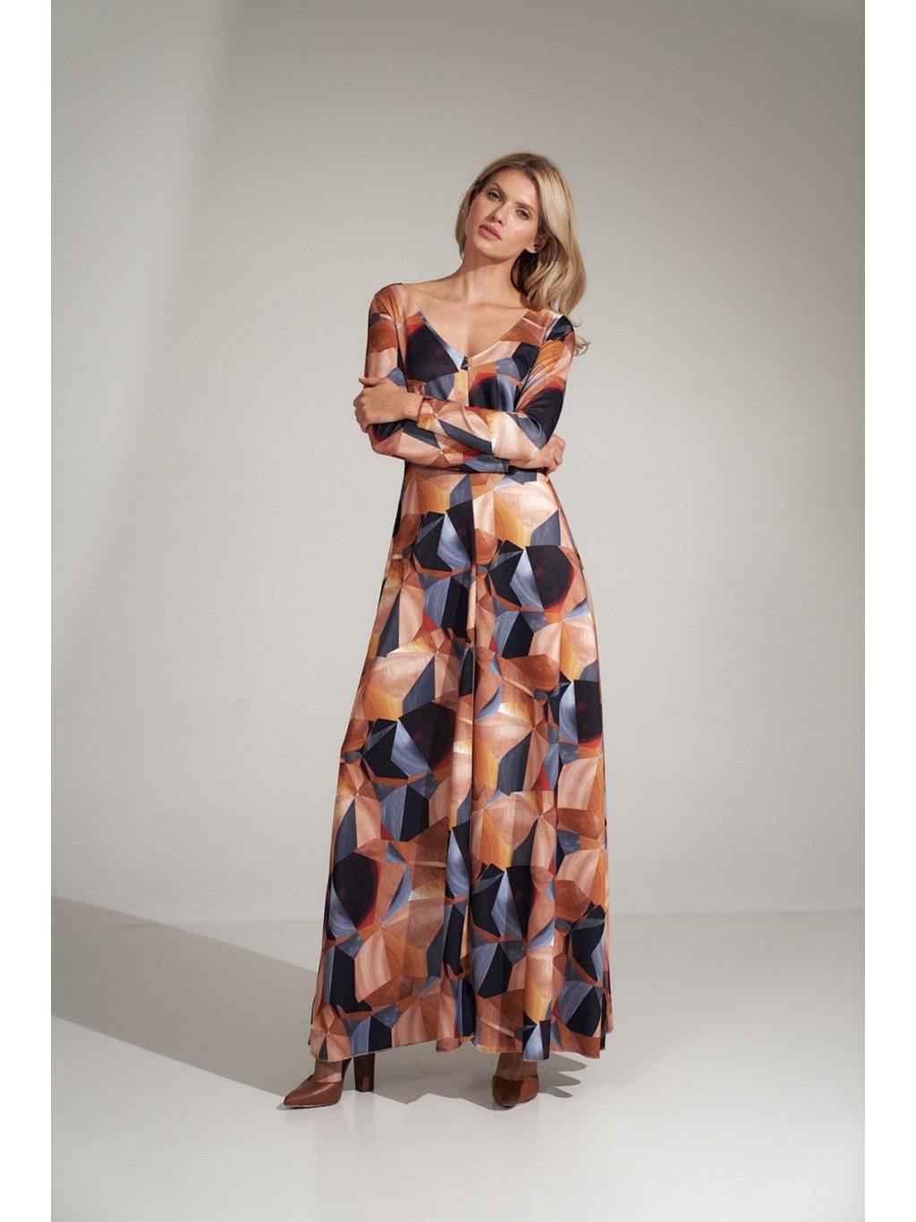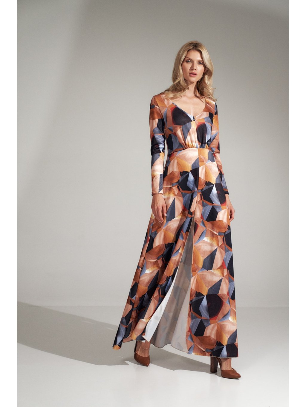 BAREVNÉ DLOUHÉ ŠATY S GEOMETRICKÝMI VZORY