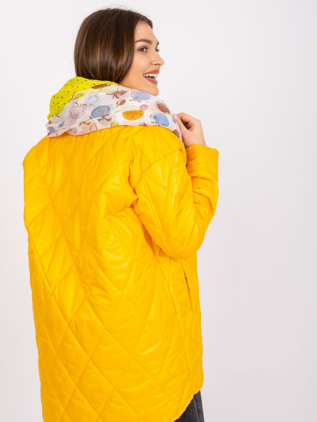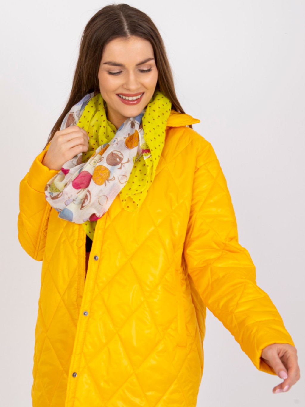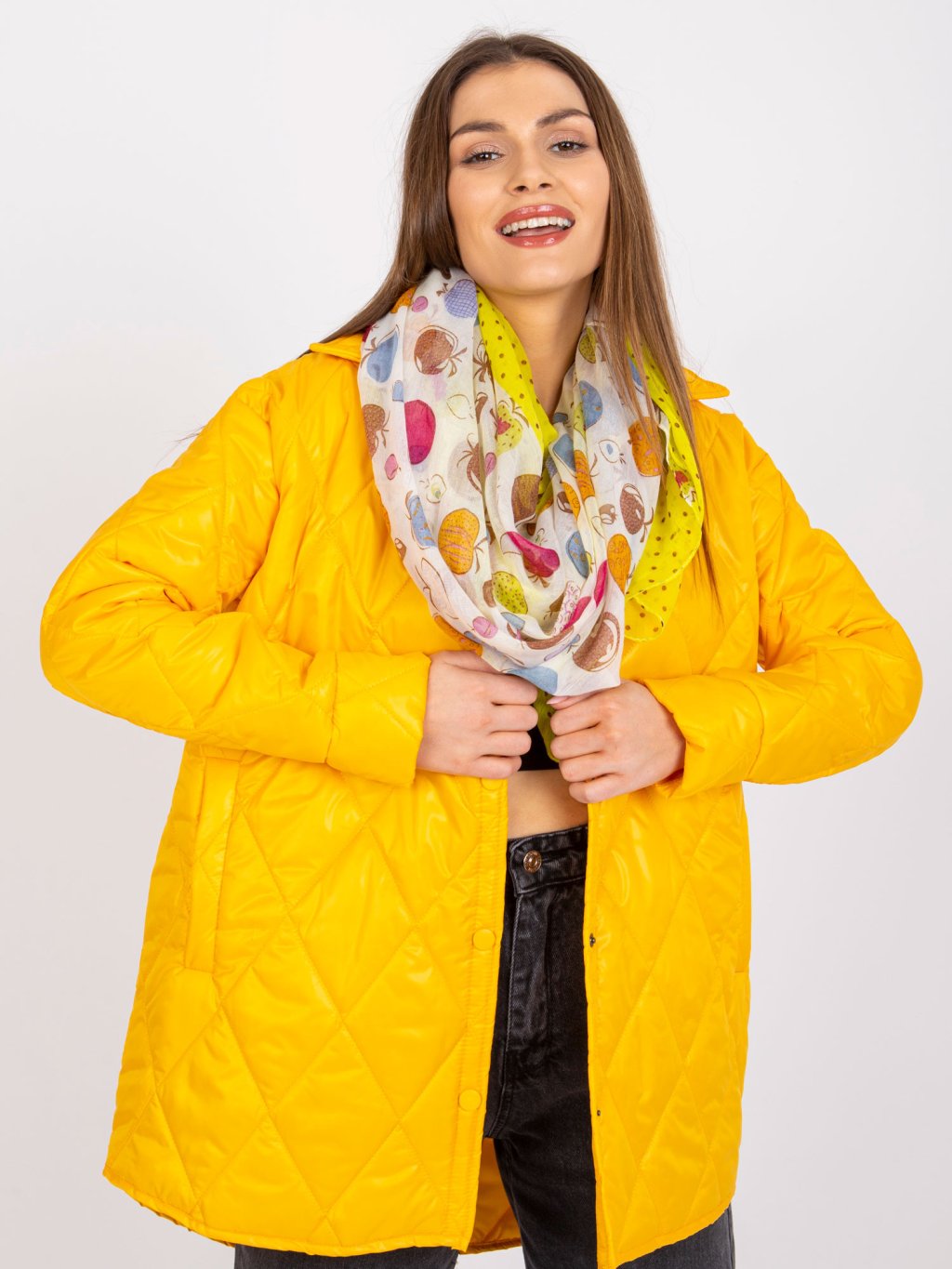 BAREVNÝ ŠÁTEK S OVOCNÝMI VZORY SE ŽLUTÝM LEMEM