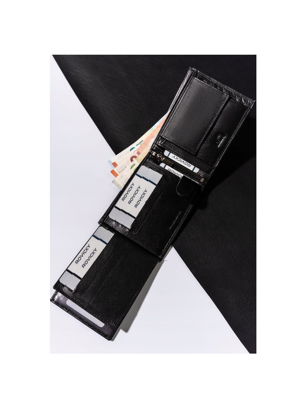 - 10 přihrádek vyhrazených na karty, vizitky, věrnostní karty a dokumenty ve formátu ID karty