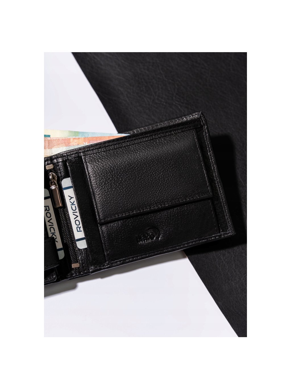 - 1 přihrádka, ve střední části peněženky, zapínaná na zip