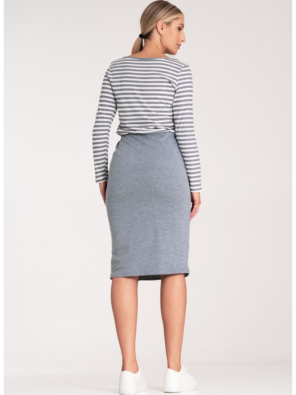 BAVLNĚNÉ ŠEDÉ ŠATY S DLOUHÝM RUKÁVEM