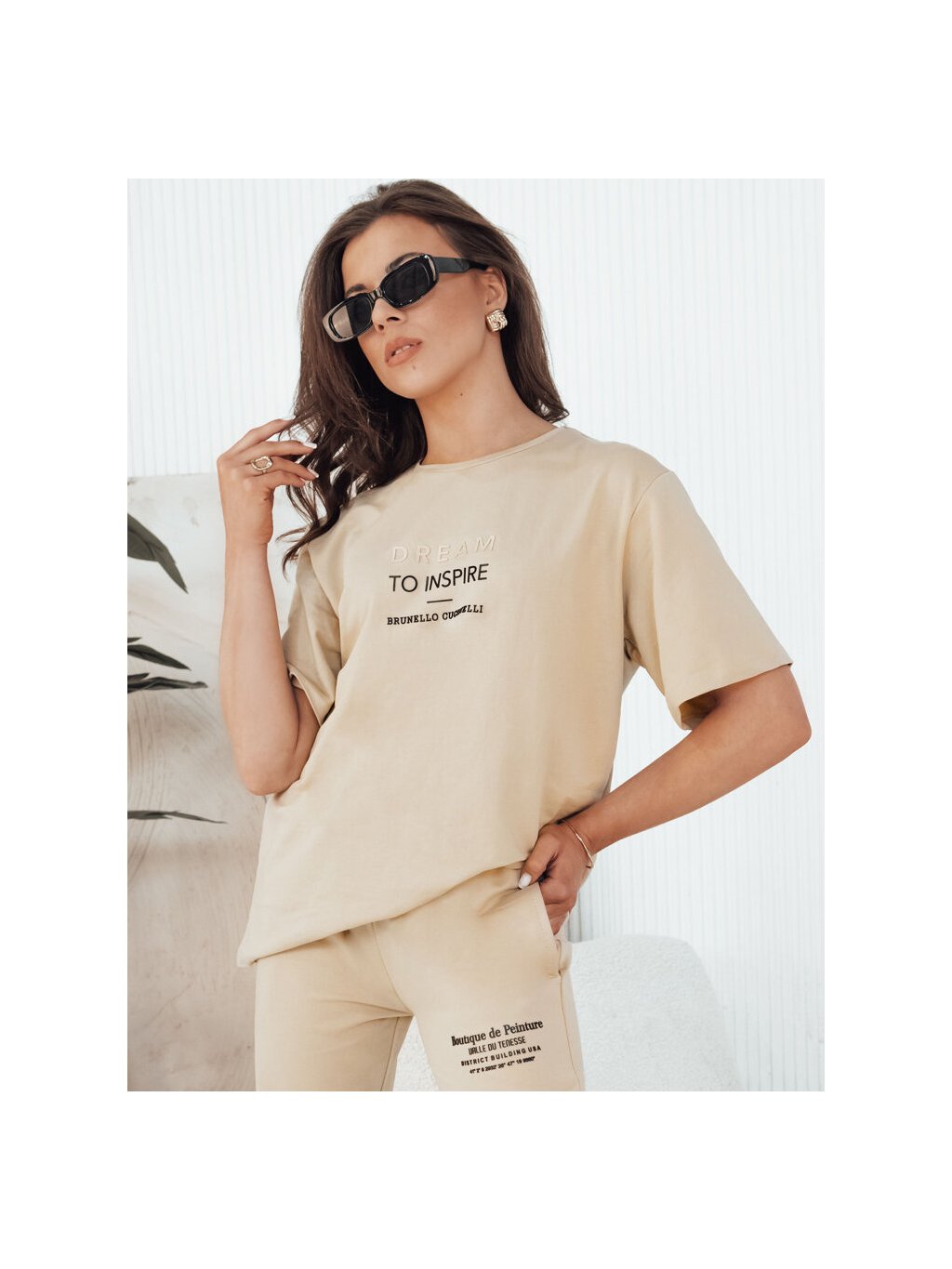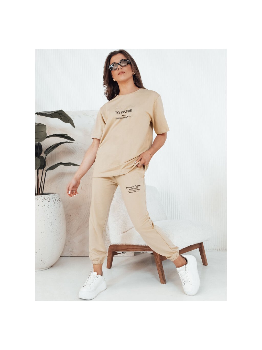 BÉŽOVÁ BAVLNĚNÁ SOUPRAVA TRIČKA A TEPLÁKŮ SIPAN