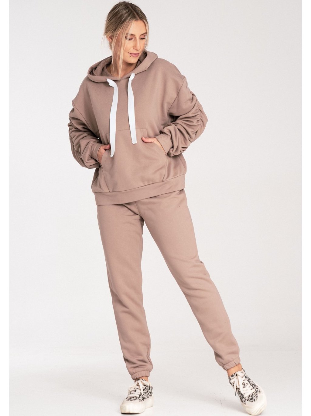 BÉŽOVÁ DÁMSKÁ BAVLNĚNÁ MIKINA S KAPUCÍ