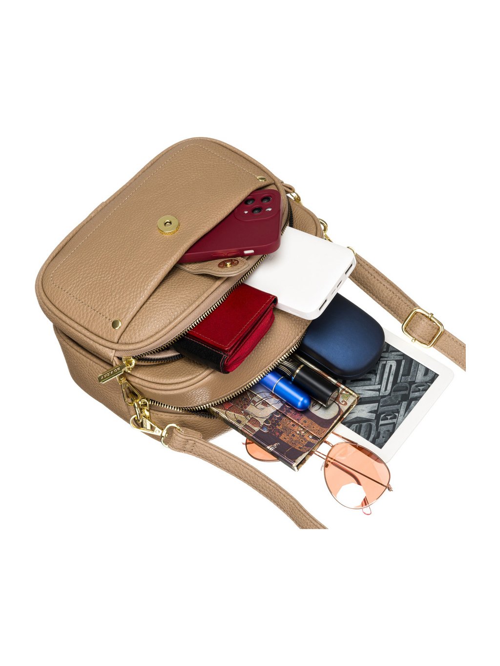 BÉŽOVÁ DÁMSKÁ CROSSBODY KABELKA S ODNÍMATELNOU PŘEDNÍ TAŠTIČKOU