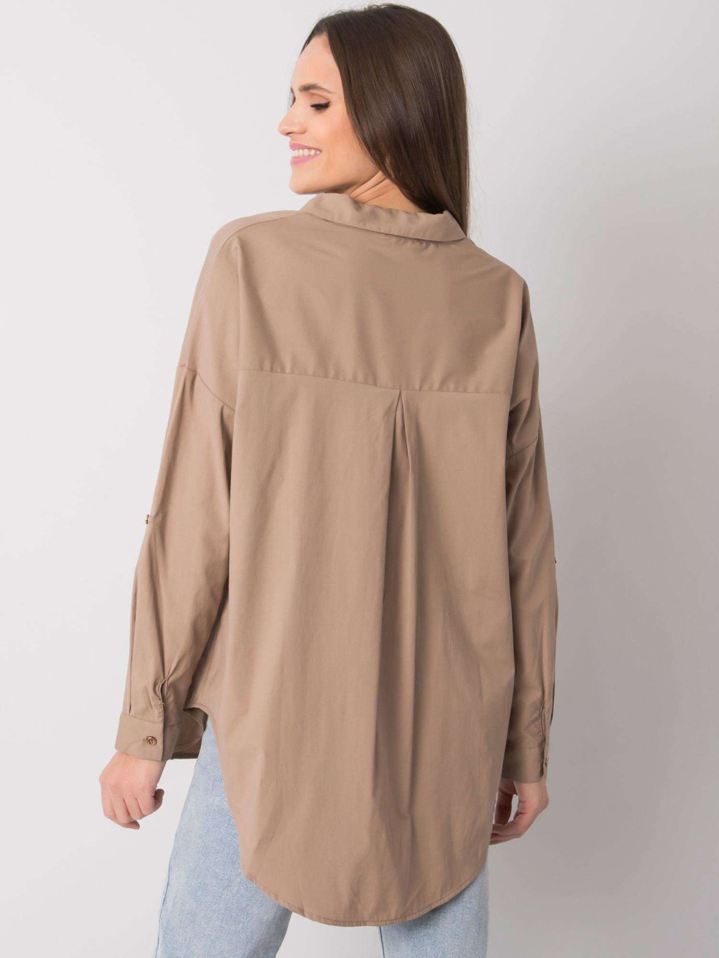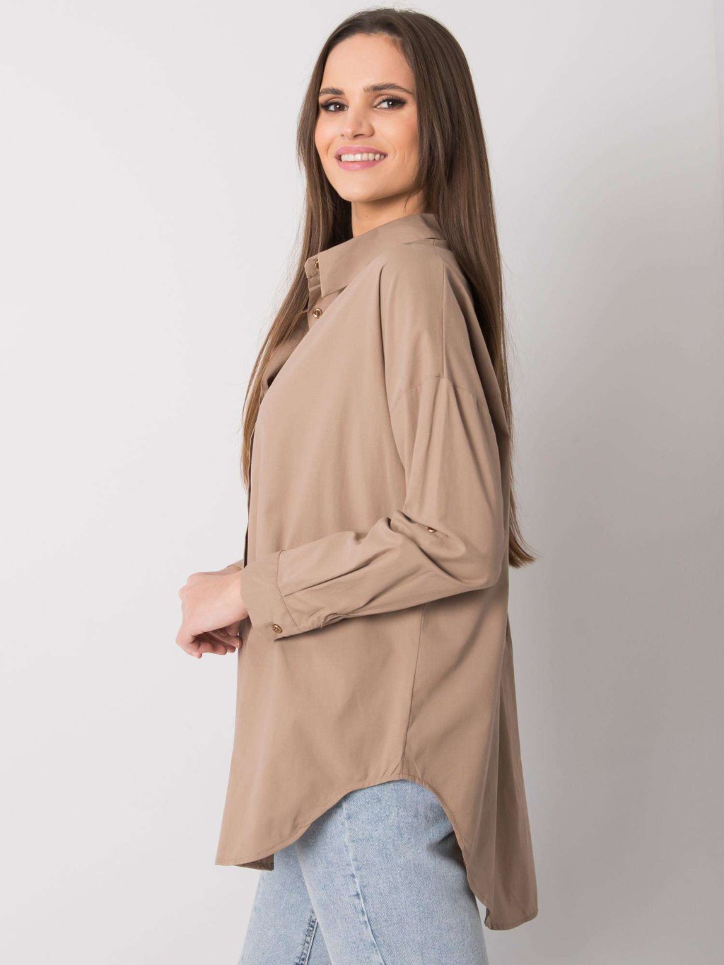 BÉŽOVÁ DÁMSKÁ OVERSIZE KOŠILE S DLOUHÝMI RUKÁVY