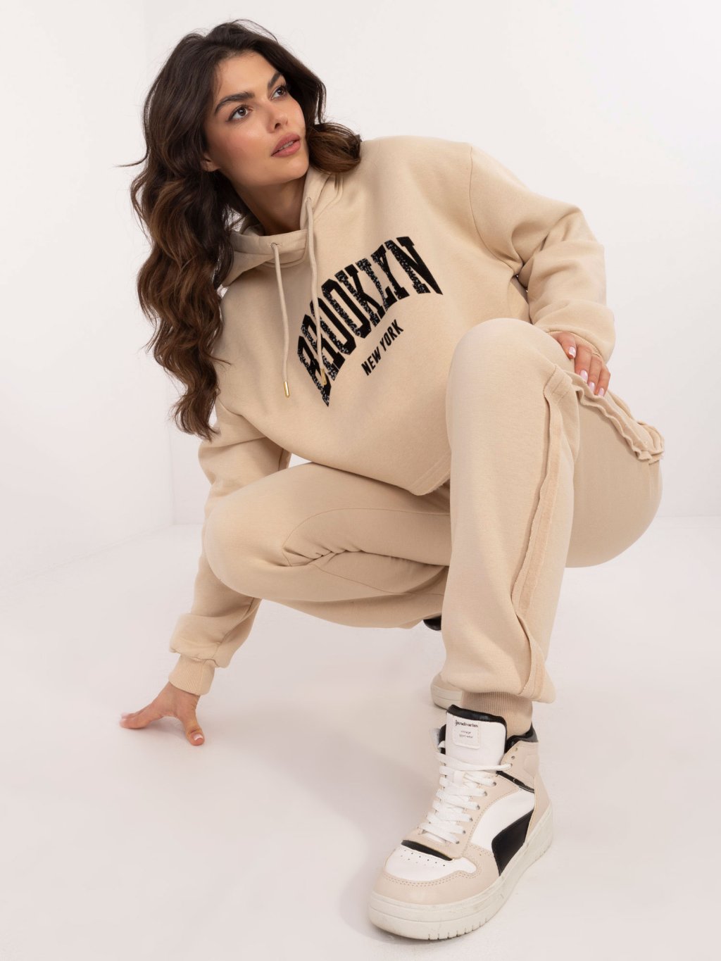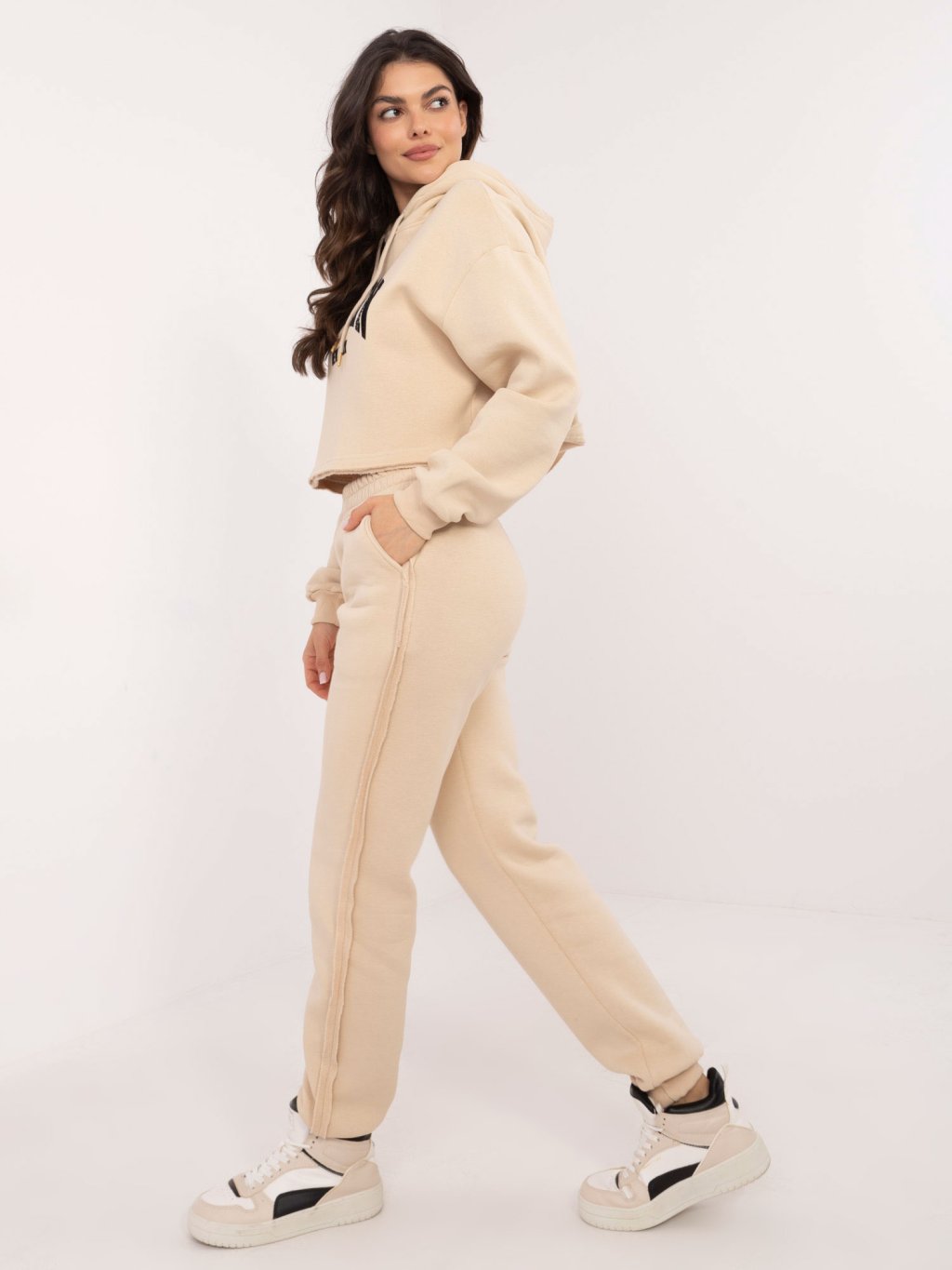 BÉŽOVÁ DÁMSKÁ TEPLÁKOVÁ SOUPRAVA S CROP MIKINOU