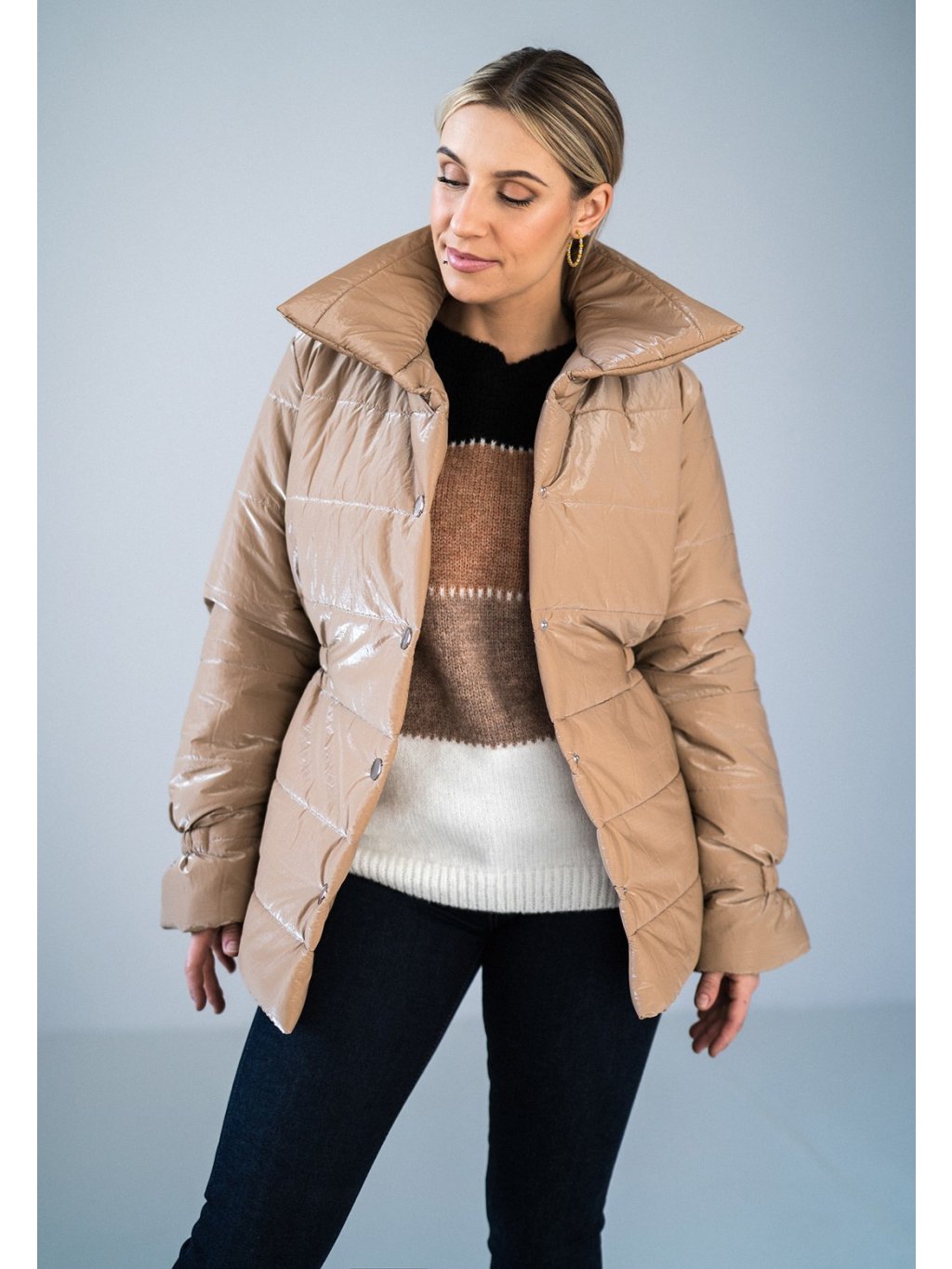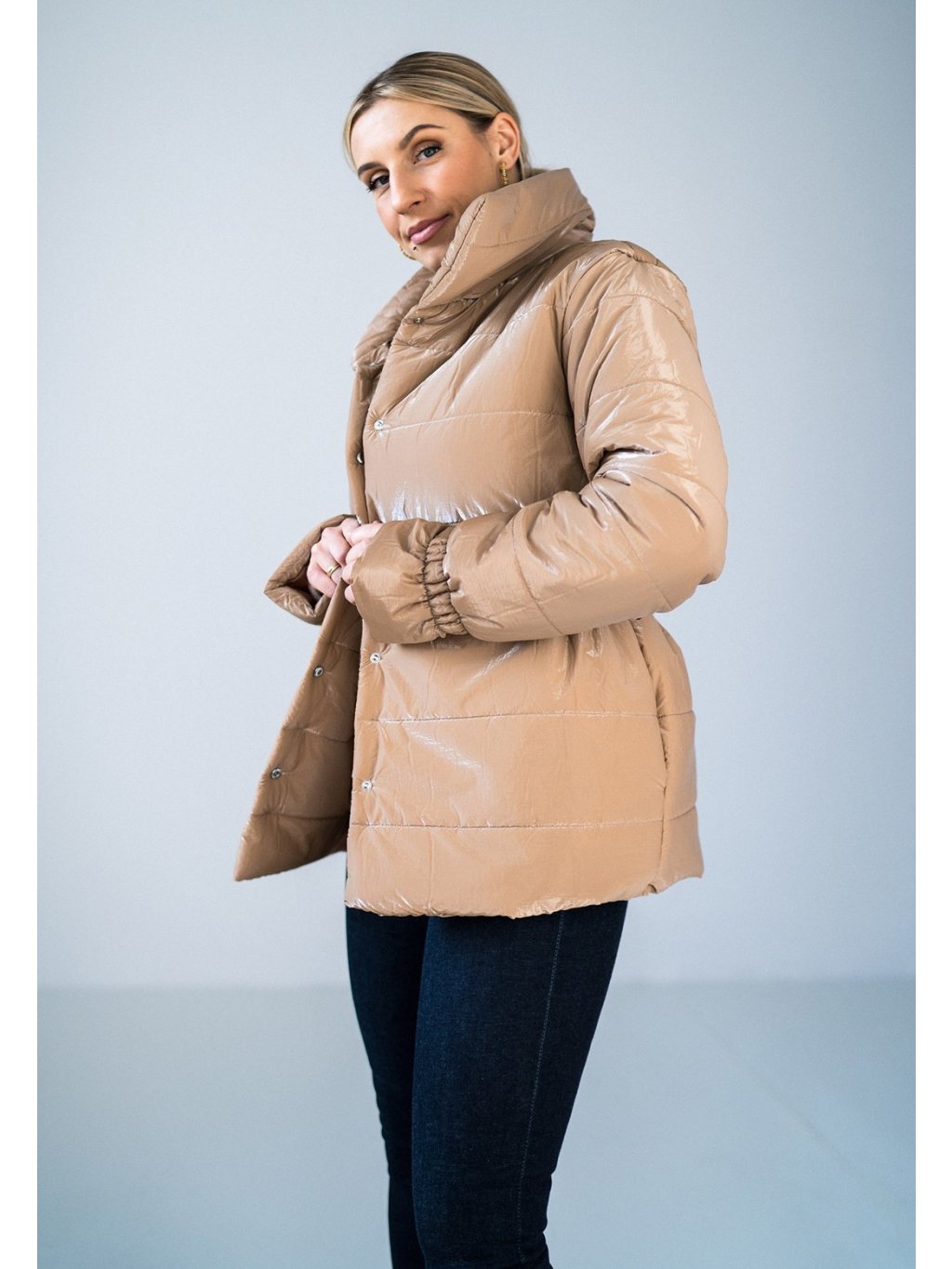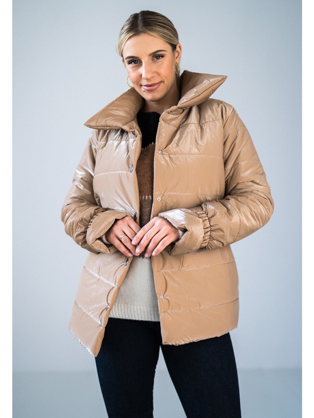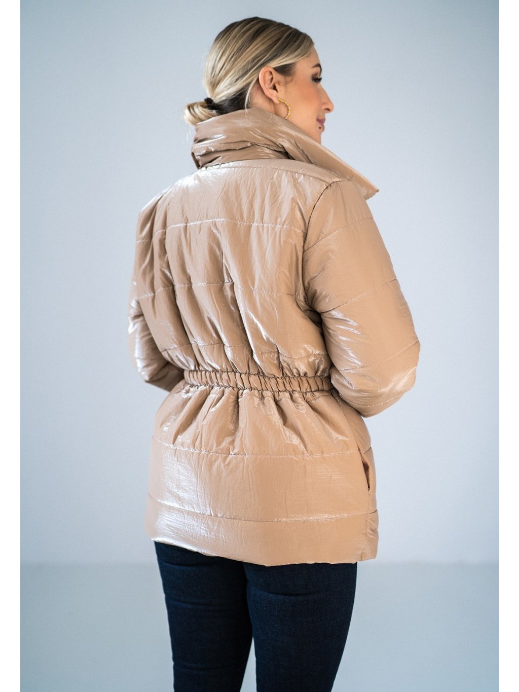 BÉŽOVÁ LESKLÁ PROŠÍVANÁ BUNDA