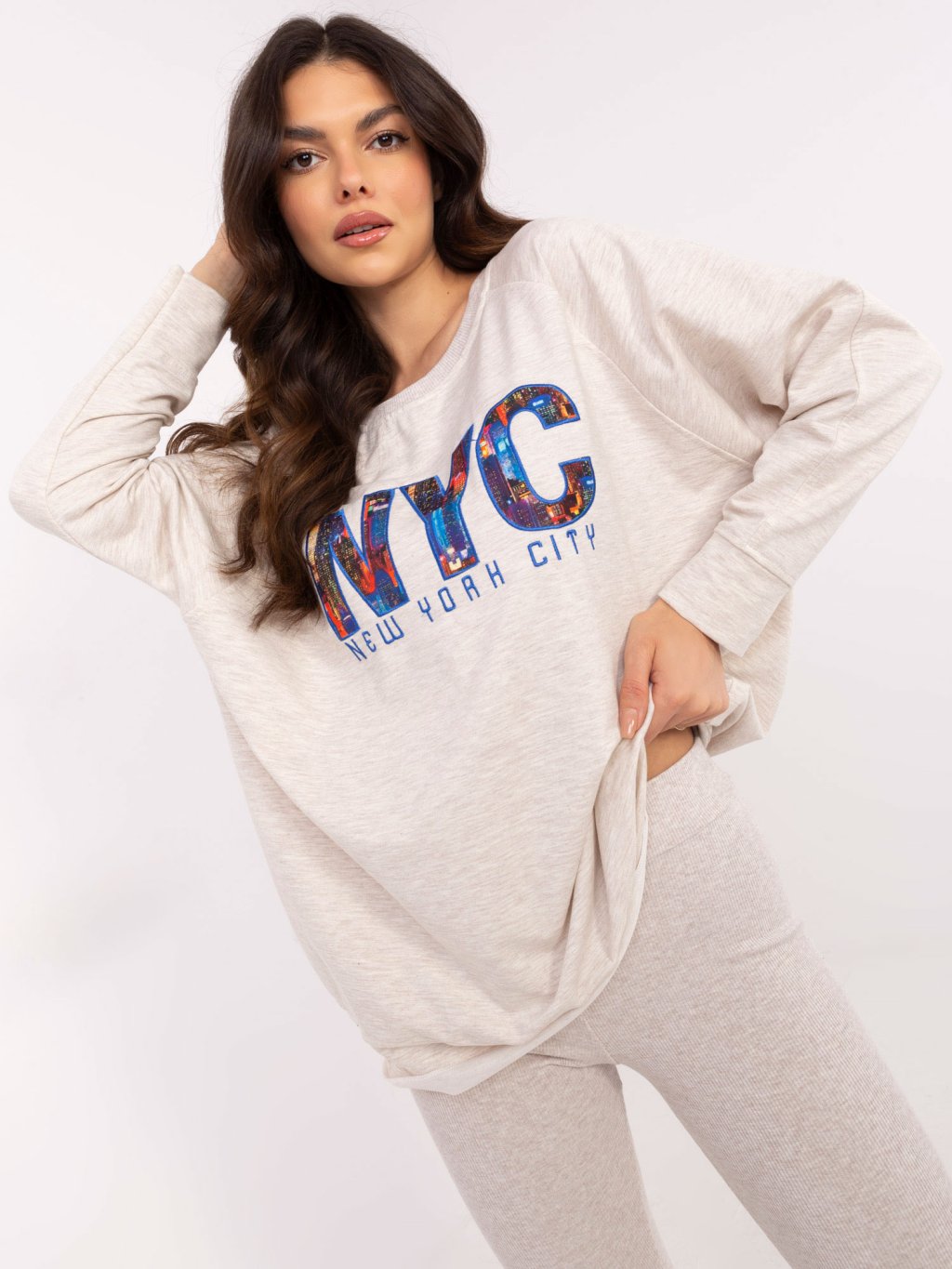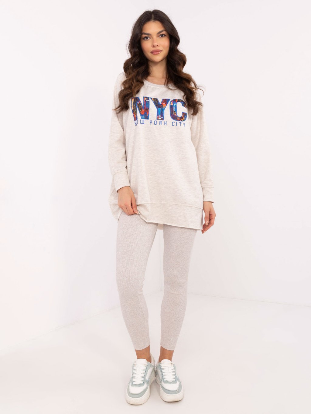 BÉŽOVÁ MELANŽ DÁMSKÁ SOUPRAVA S LEGÍNAMI