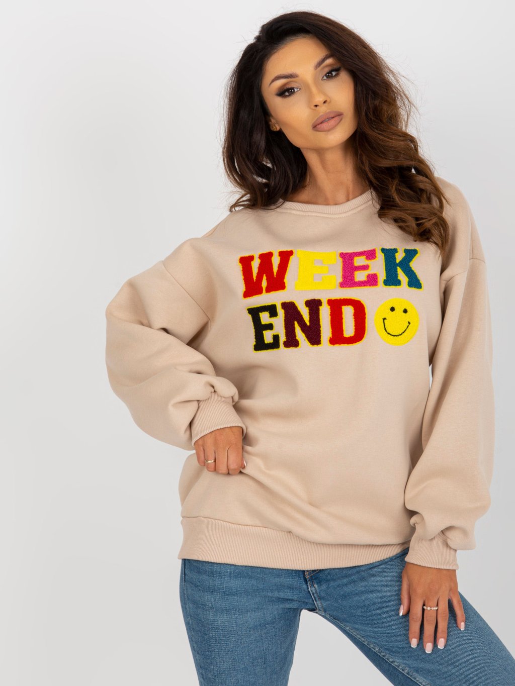 BÉŽOVÁ MIKINA BEZ KAPUCE S NÁPISEM WEEKEND
