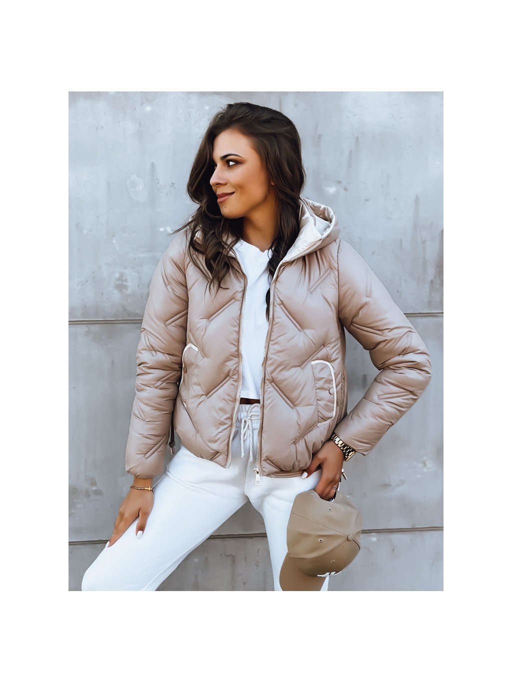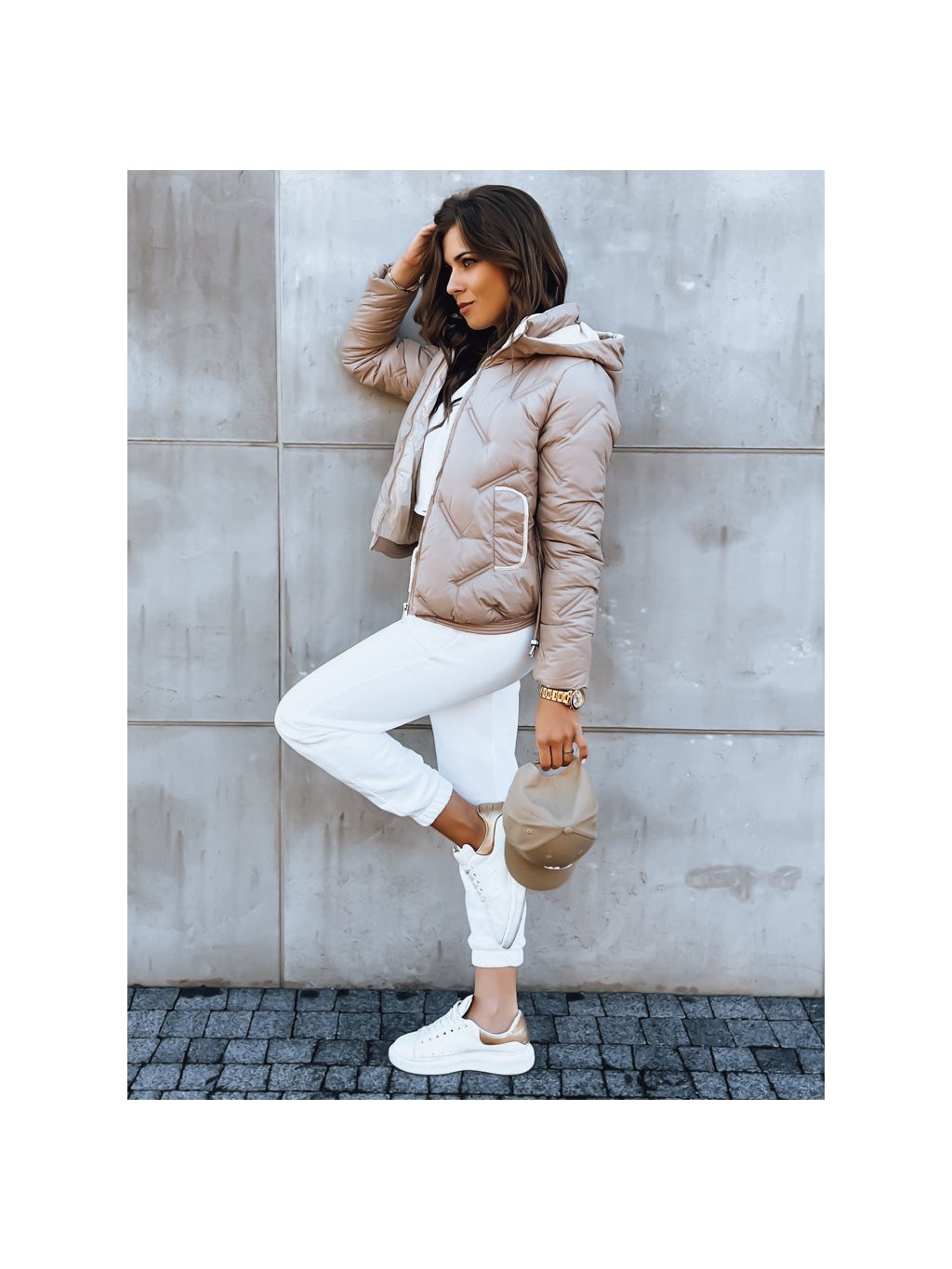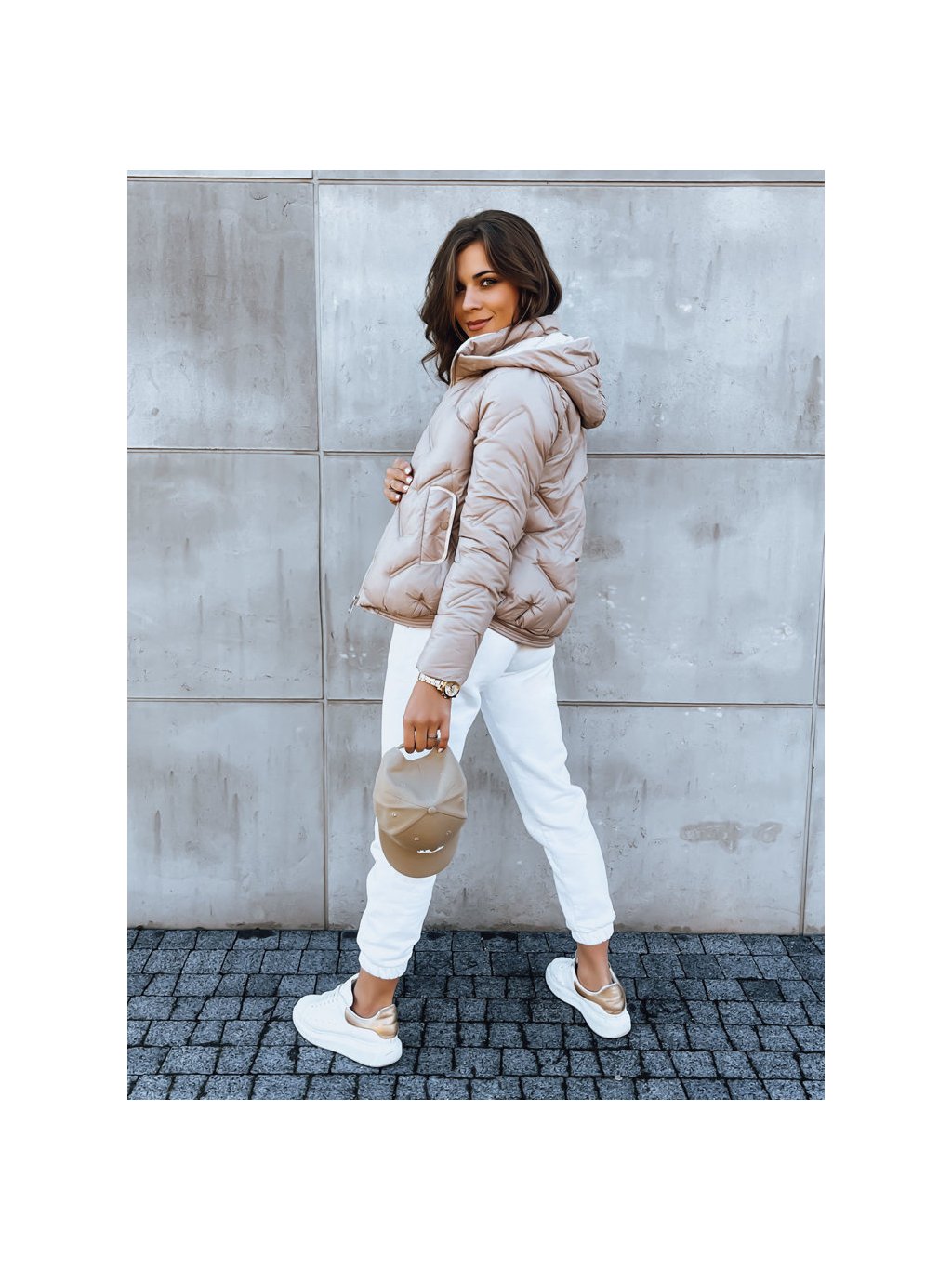 BÉŽOVÁ PROŠÍVANÁ BUNDA S KAPUCÍ LIDIL