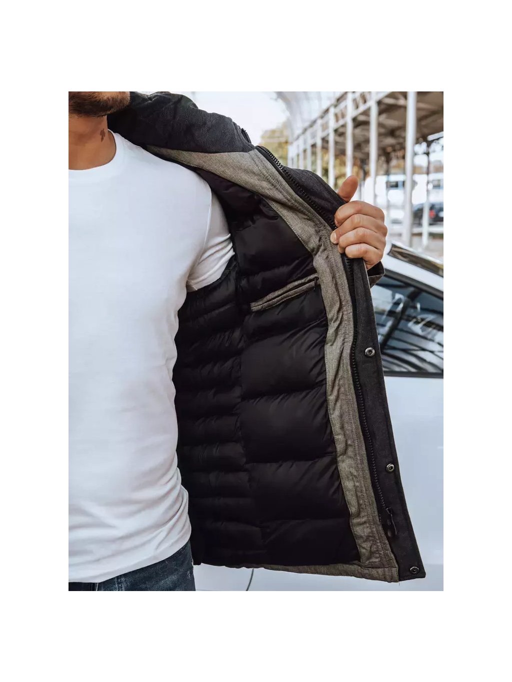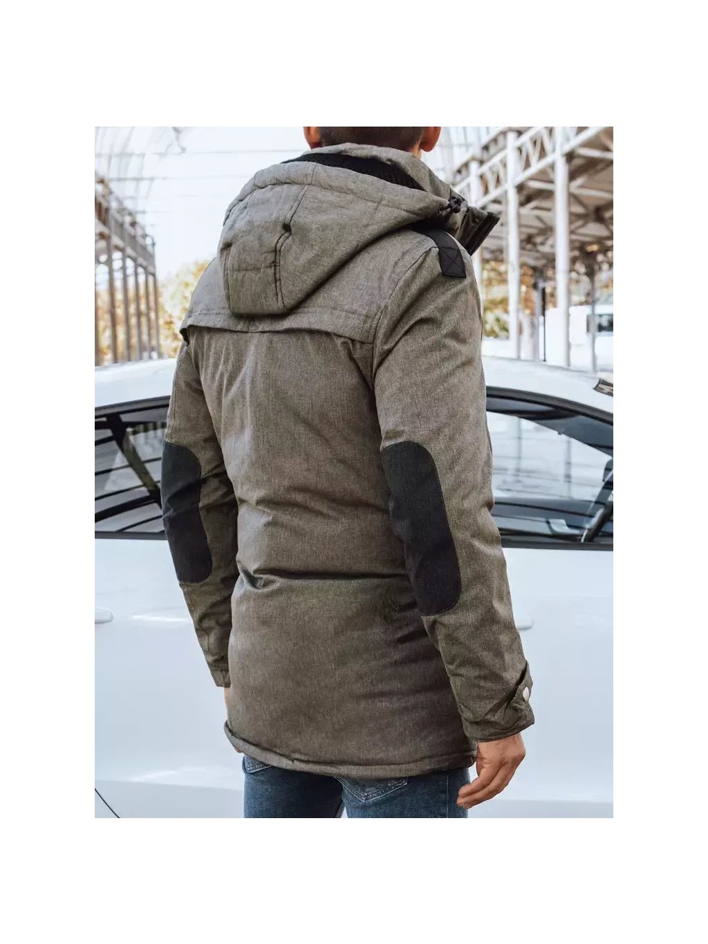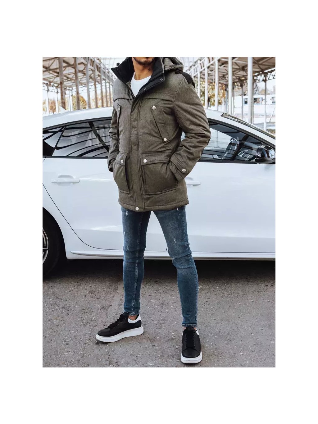 ŠEDO-BÉŽOVÁ MELÍROVANÁ TEPLÁ KABÁTOVÁ BUNDA S KAPSAMI