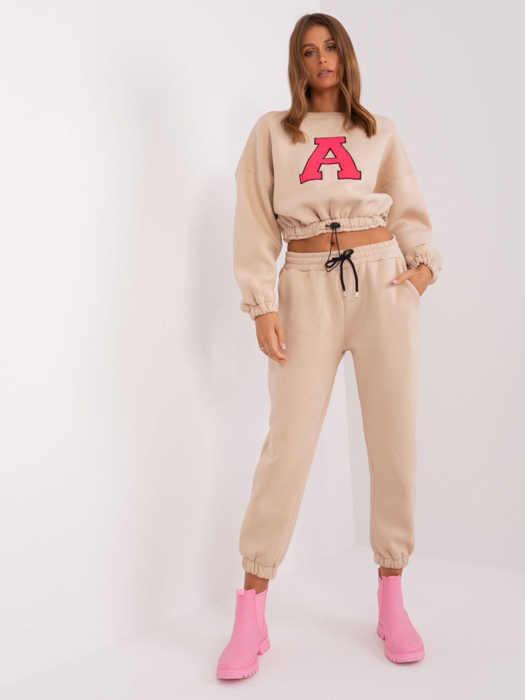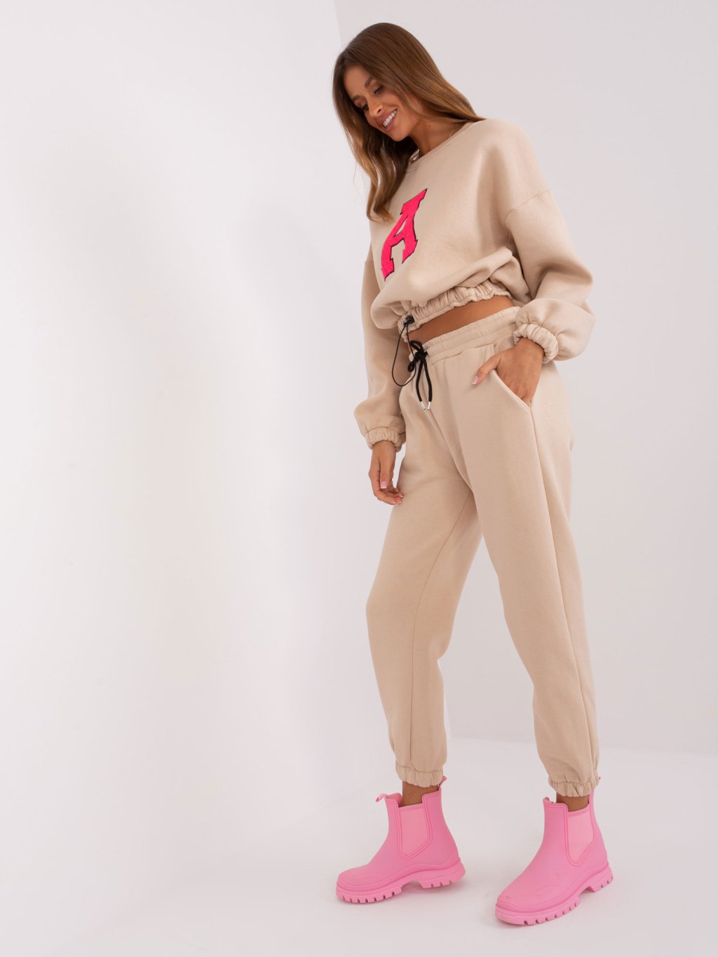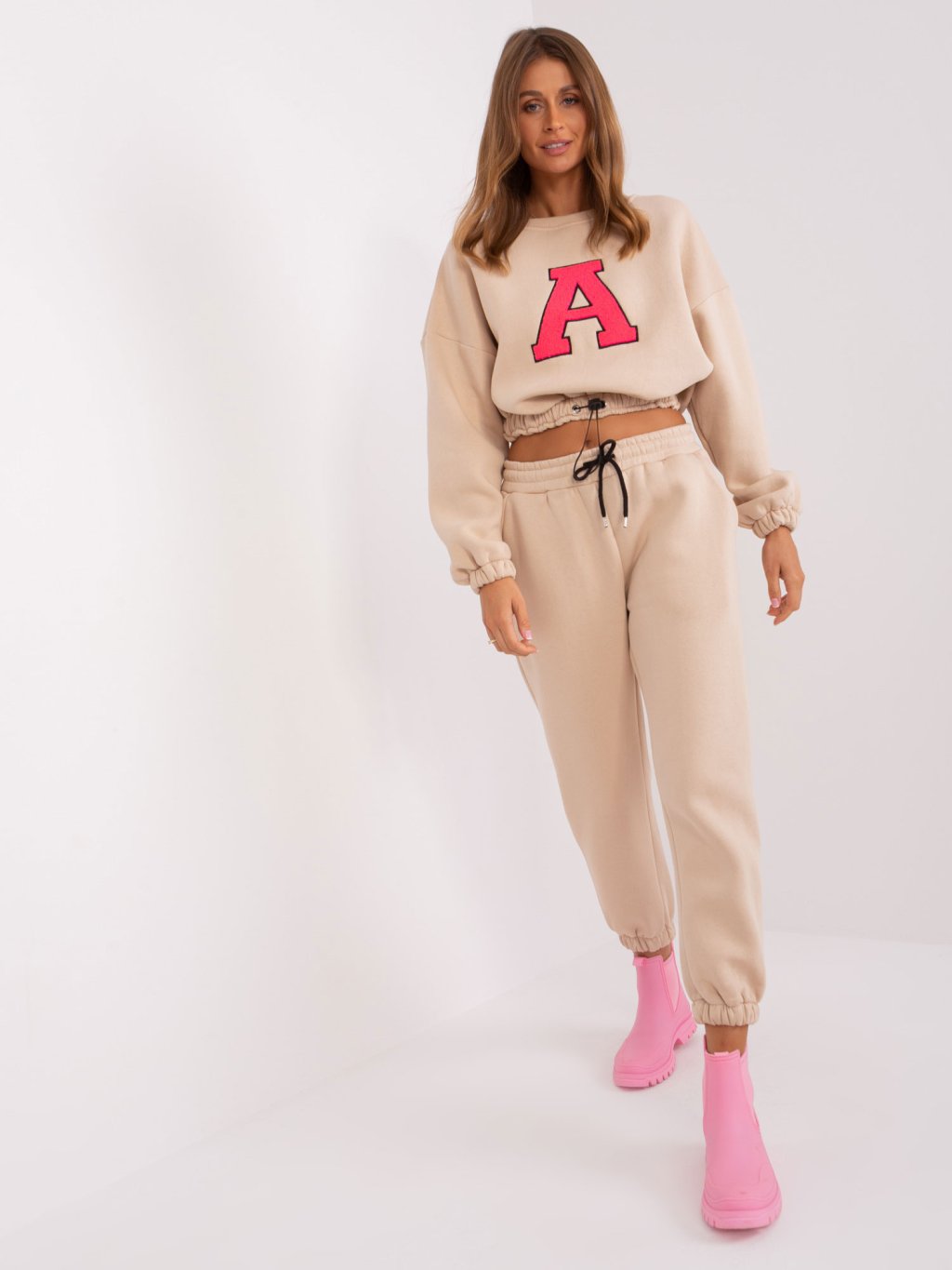 BÉŽOVÁ TEPLÁKOVÁ SOUPRAVA BEZ KAPUCE