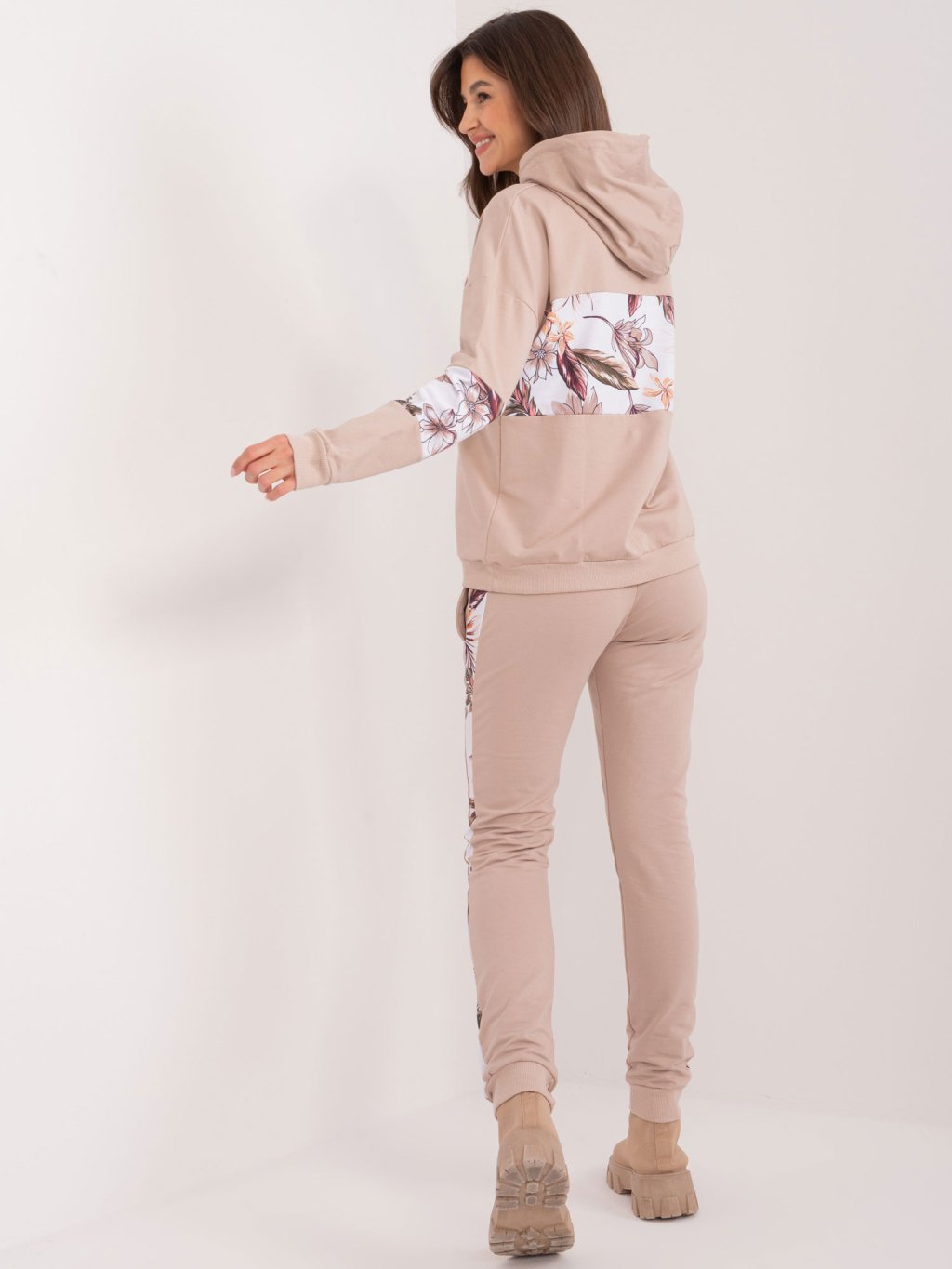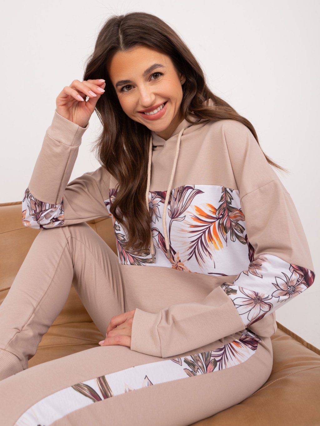 BÉŽOVÁ TEPLÁKOVÁ SOUPRAVA S KVĚTINOVÝM PRUHEM