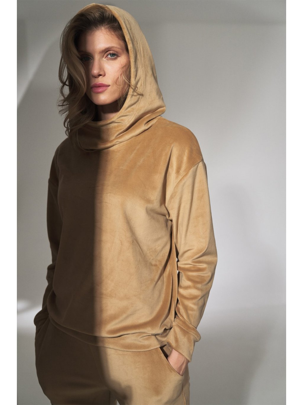 BÉŽOVÁ VELUROVÁ MIKINA