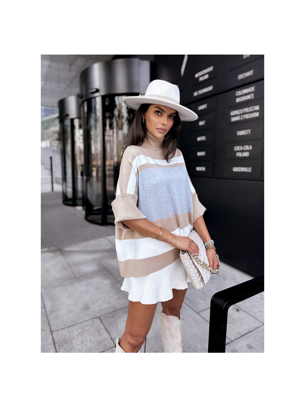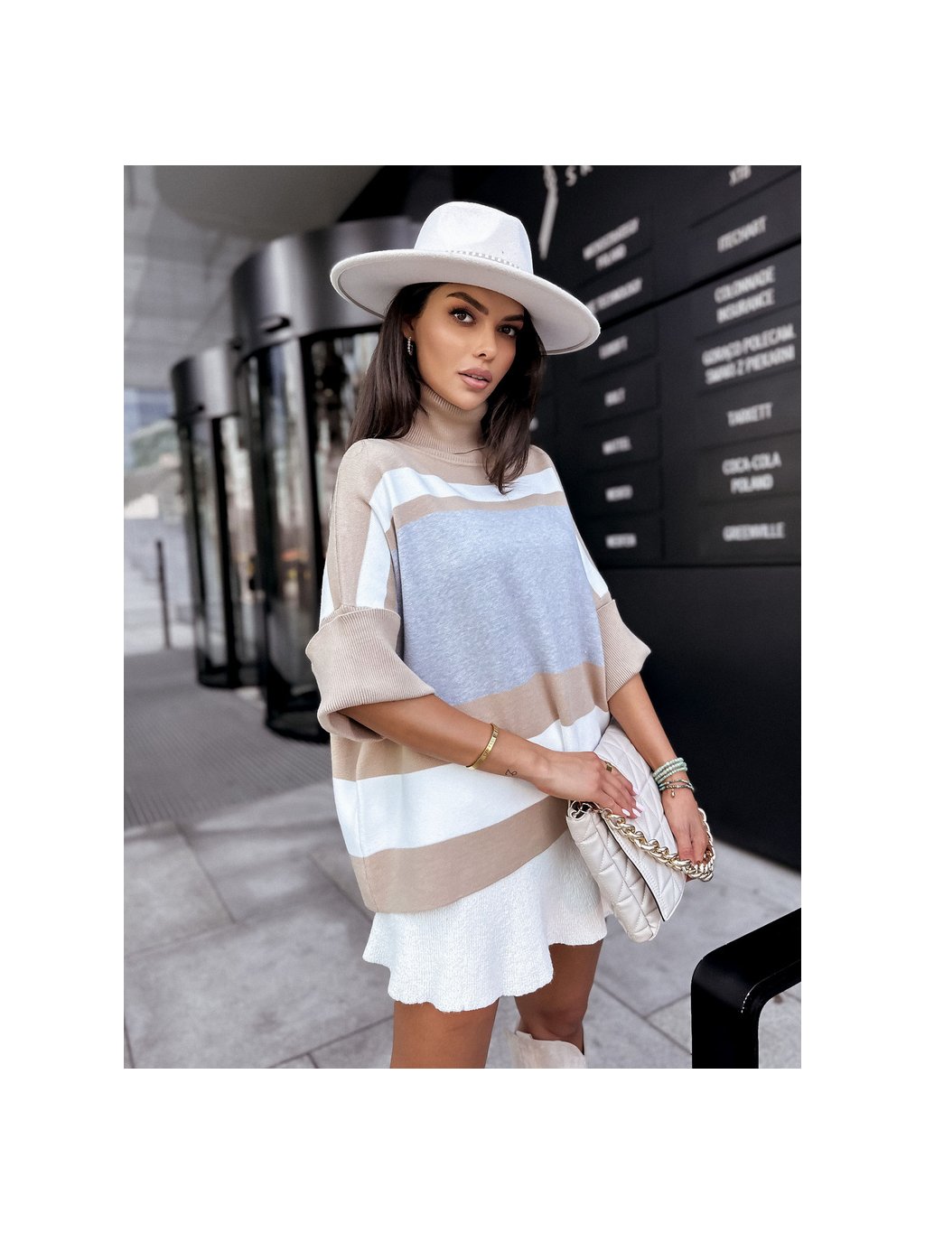 BÉŽOVĚ-BÍLÝ PRUHOVANÝ OVERSIZE ROLÁK S 3/4 RUKÁVEM ZEPHYR