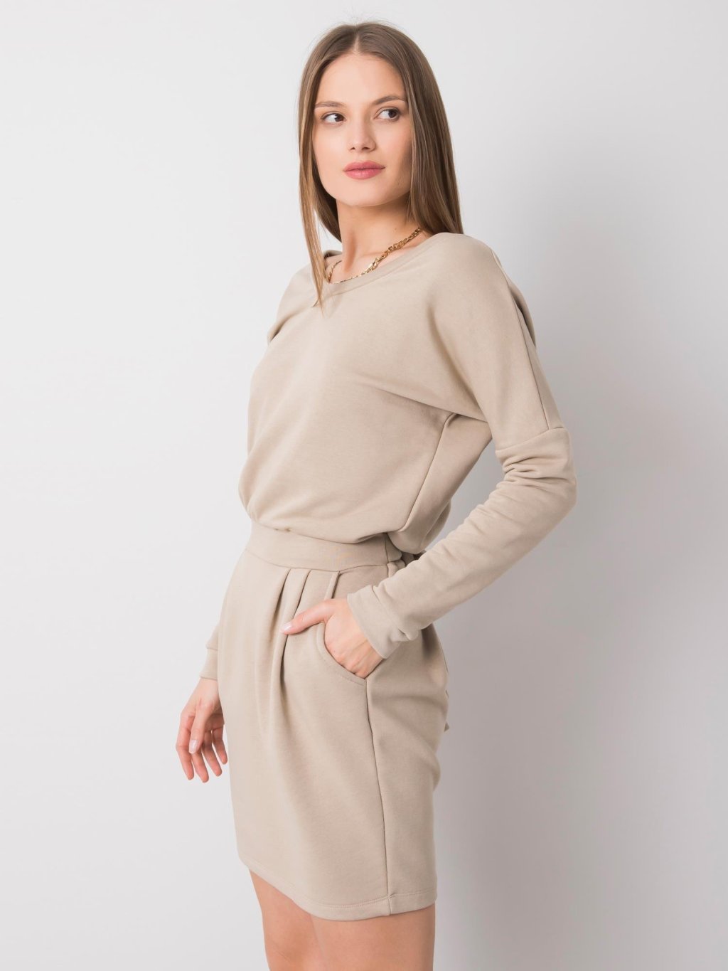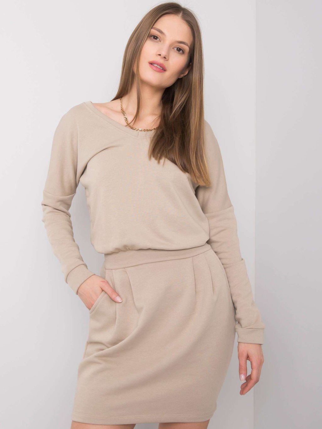 BÉŽOVÉ DÁMSKÉ ŠATY S VÁZÁNÍM