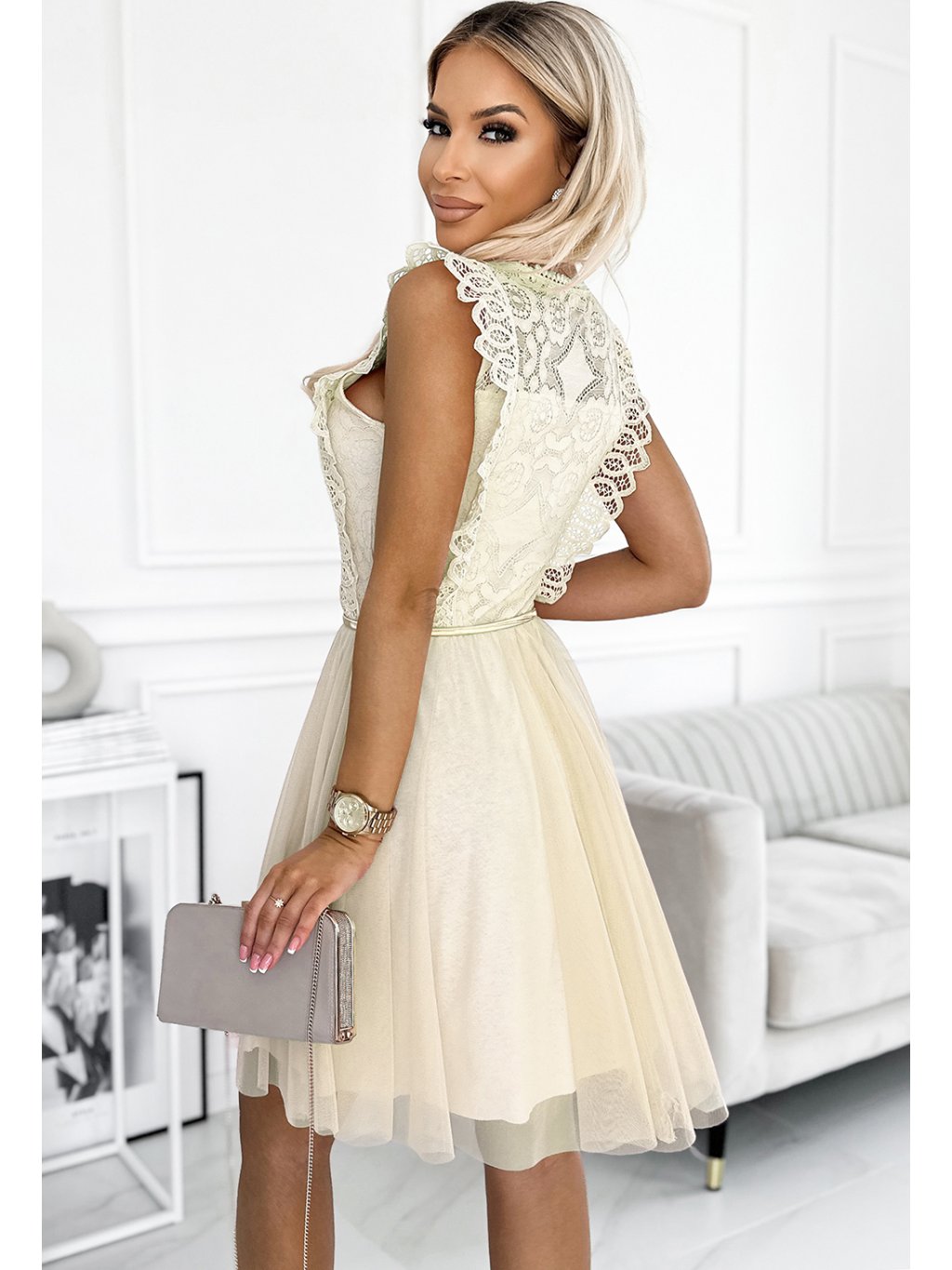 BÉŽOVÉ ŠATY S KRAJKOU A ZLATÝM PÁSKEM NATALIA