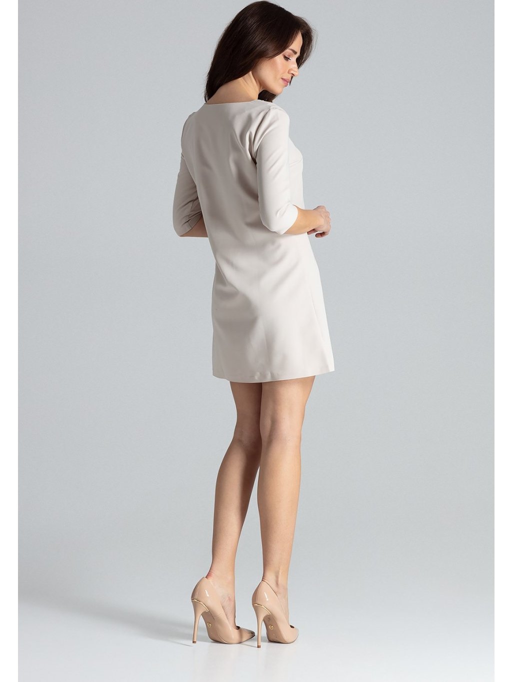BÉŽOVÉ ŠATY SE ZAPÍNÁNÍM U KRKU