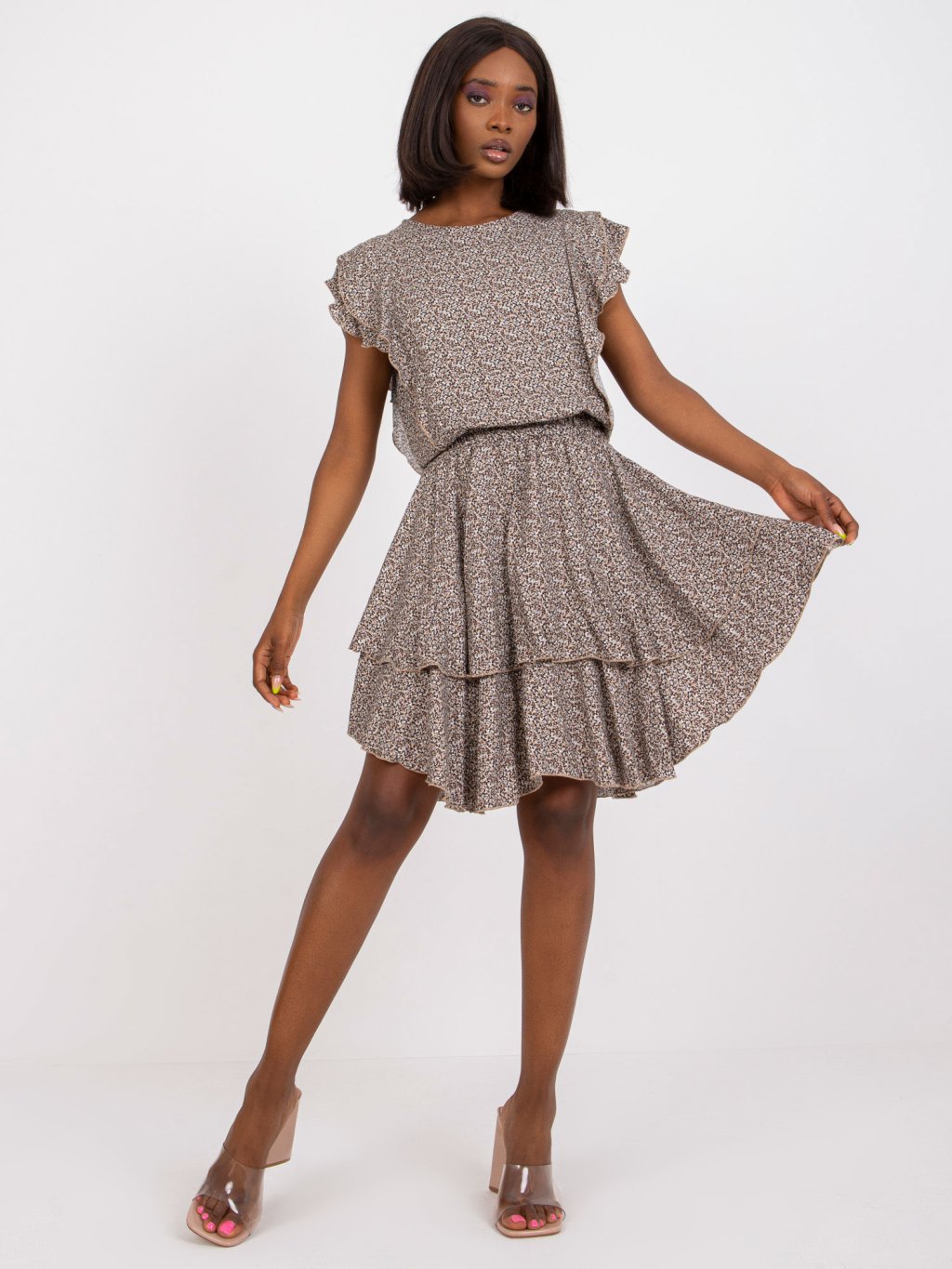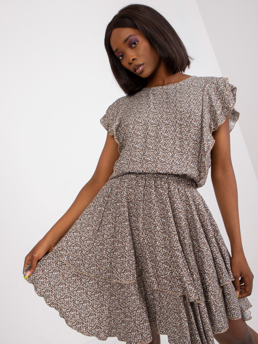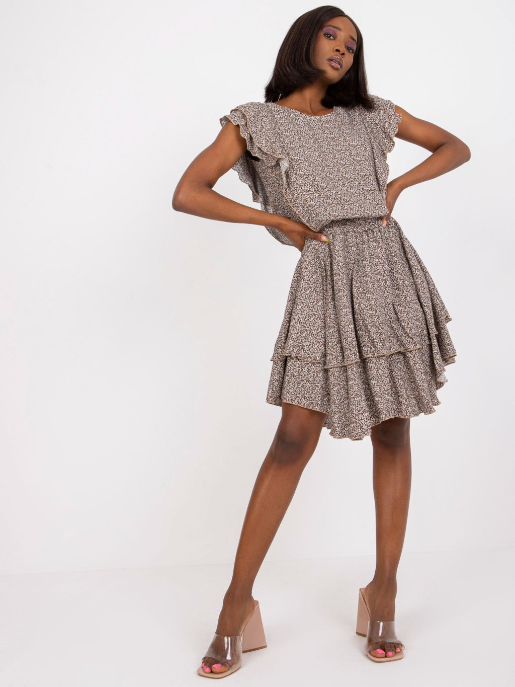 BÉŽOVÉ VZOROVANÉ ŠATY S VOLÁNKY