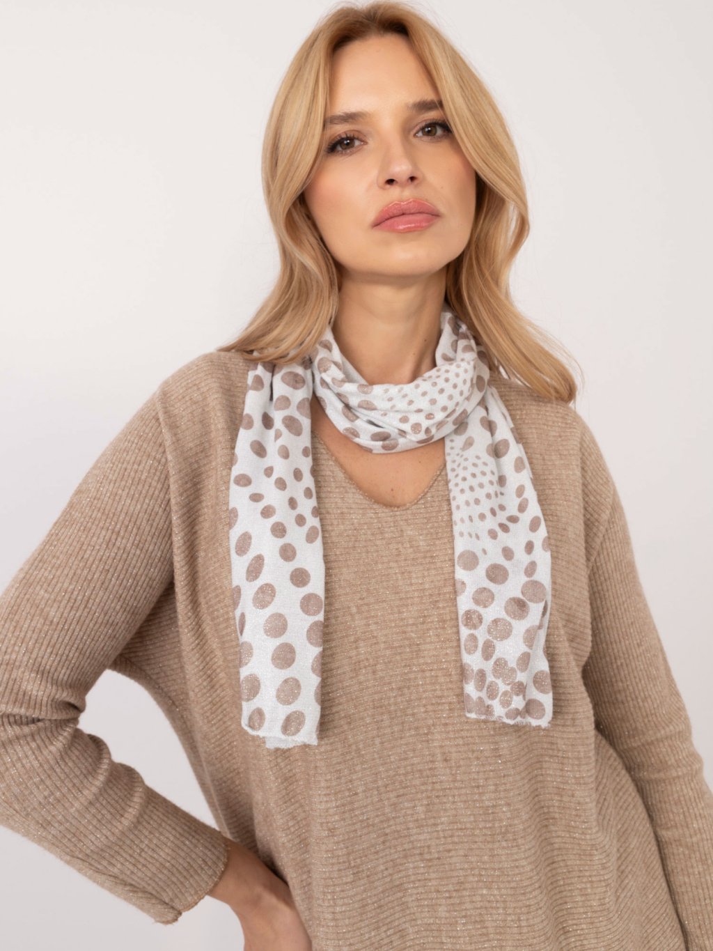 BÉŽOVÝ DÁMSKÝ OVERSIZE SVETR S LESKLOU NITÍ
