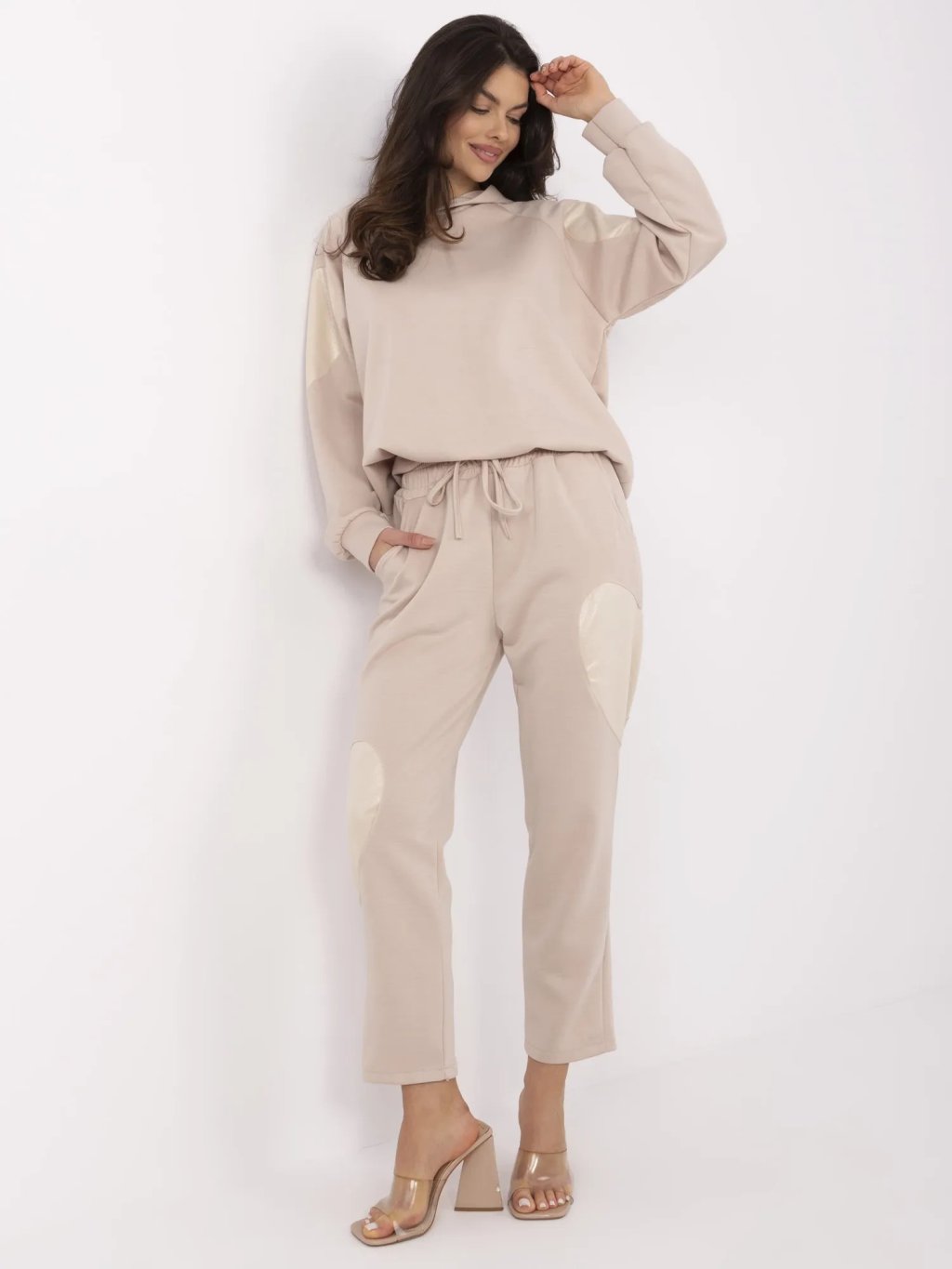 BÉŽOVÝ DÁMSKÝ SET SE SRDÍČKOVÝMI NÁŠIVKAMI