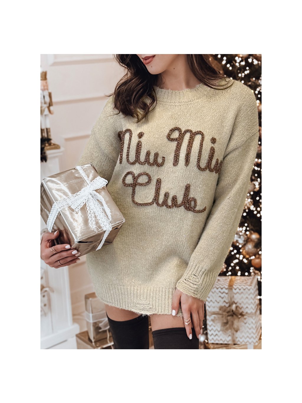 BÉŽOVÝ DÁMSKÝ TEPLÝ SVETR S VYŠÍVANÝM NÁPISEM MIU MIU