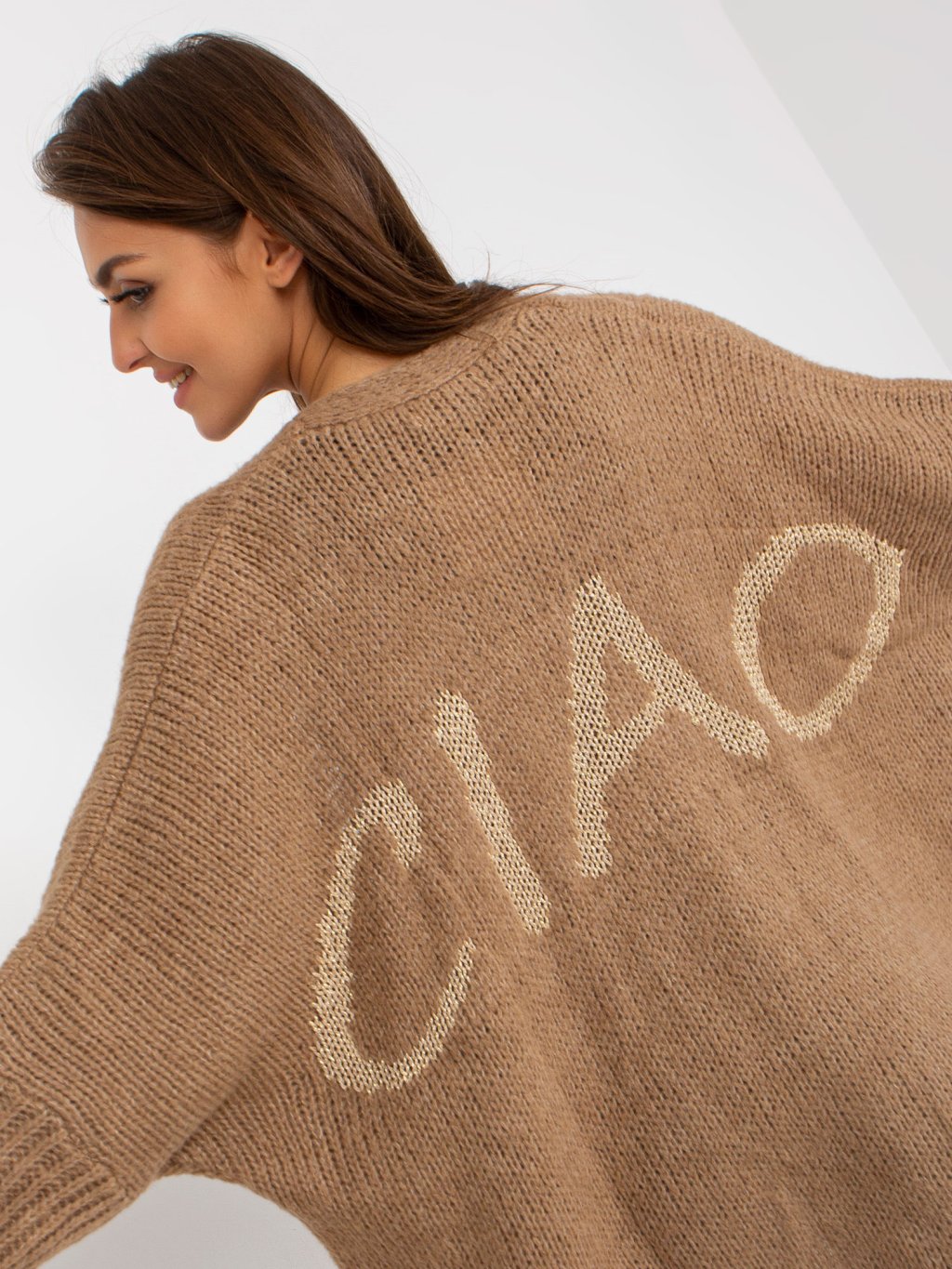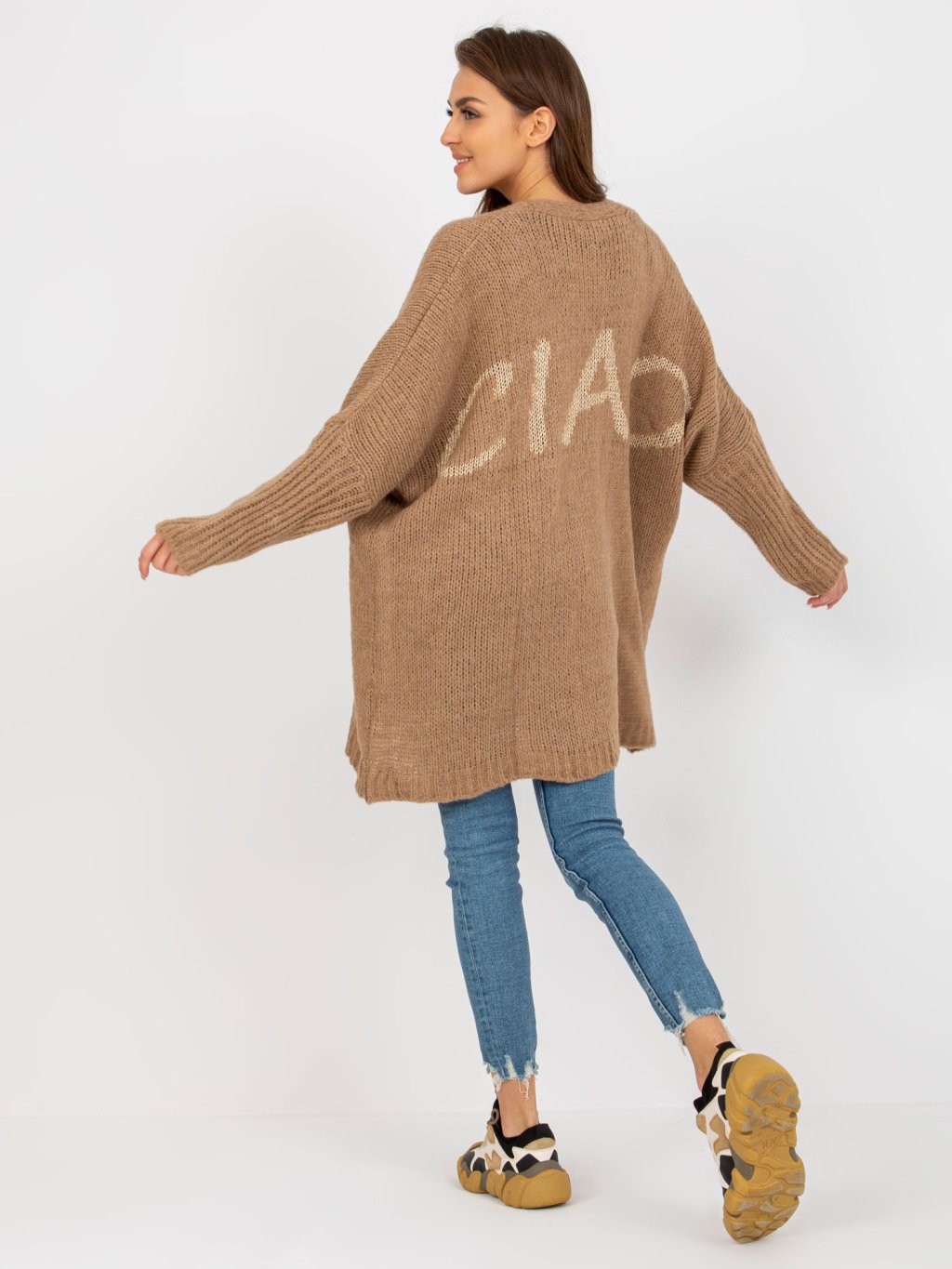 BÉŽOVÝ KARDIGAN S NÁPISEM NA ZÁDECH