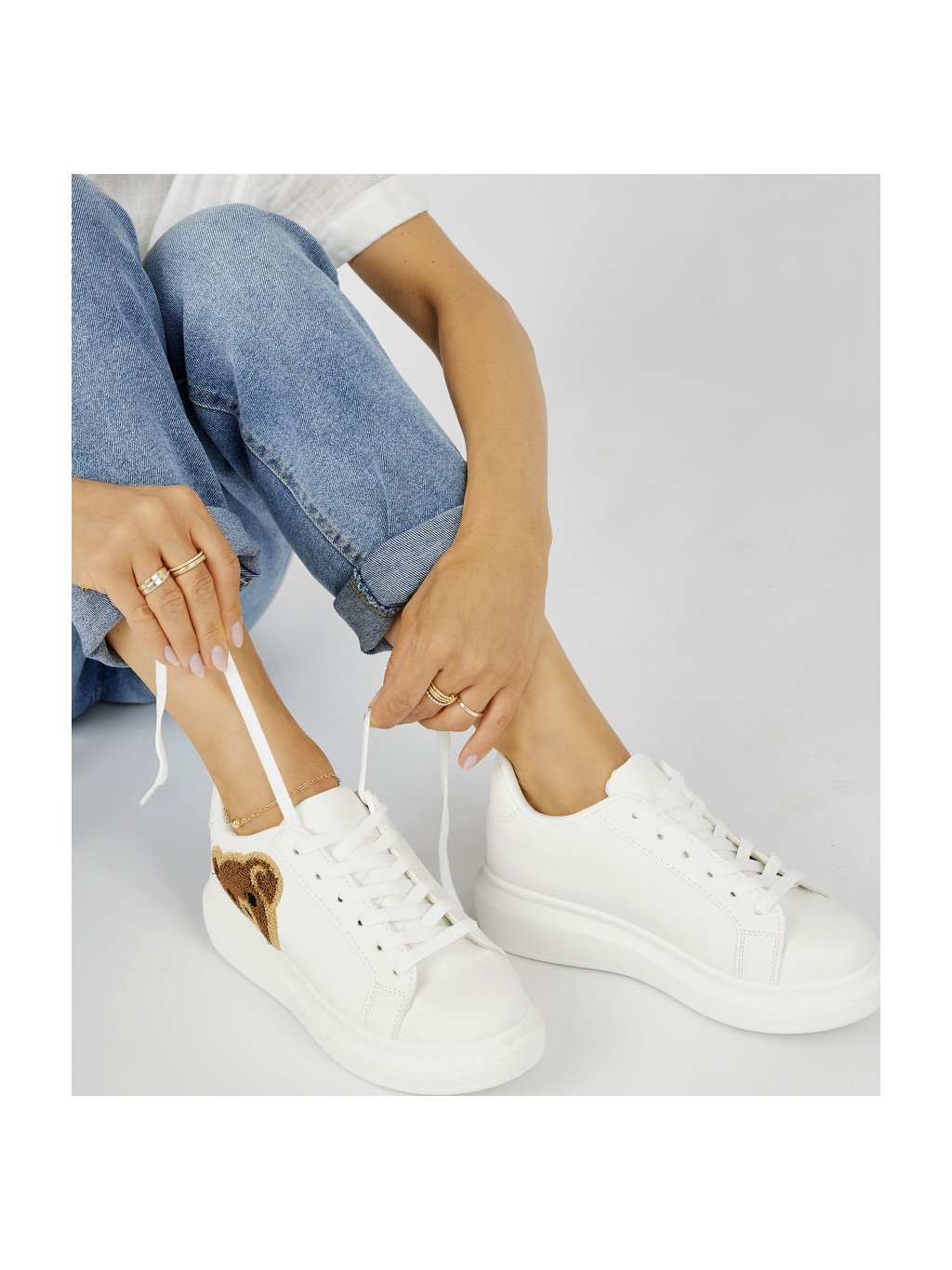 BÍLÉ DÁMSKÉ SNEAKERSY S HNĚDÝM MEDVÍDKEM