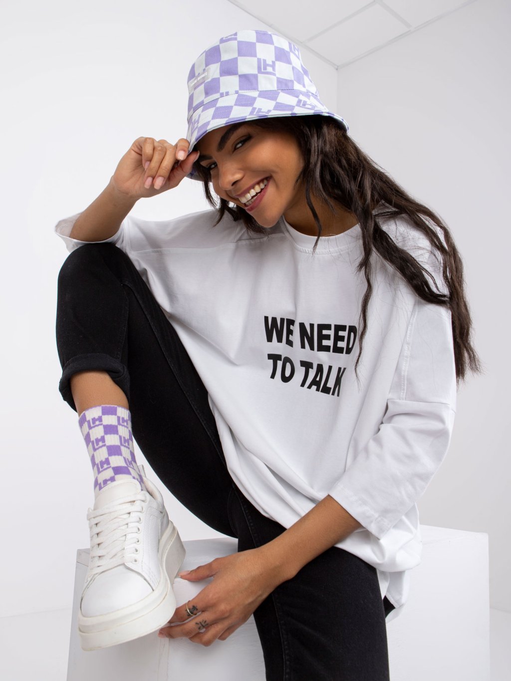 BÍLÉ DÁMSKÉ VOLNÉ TRIČKO S NÁPISEM