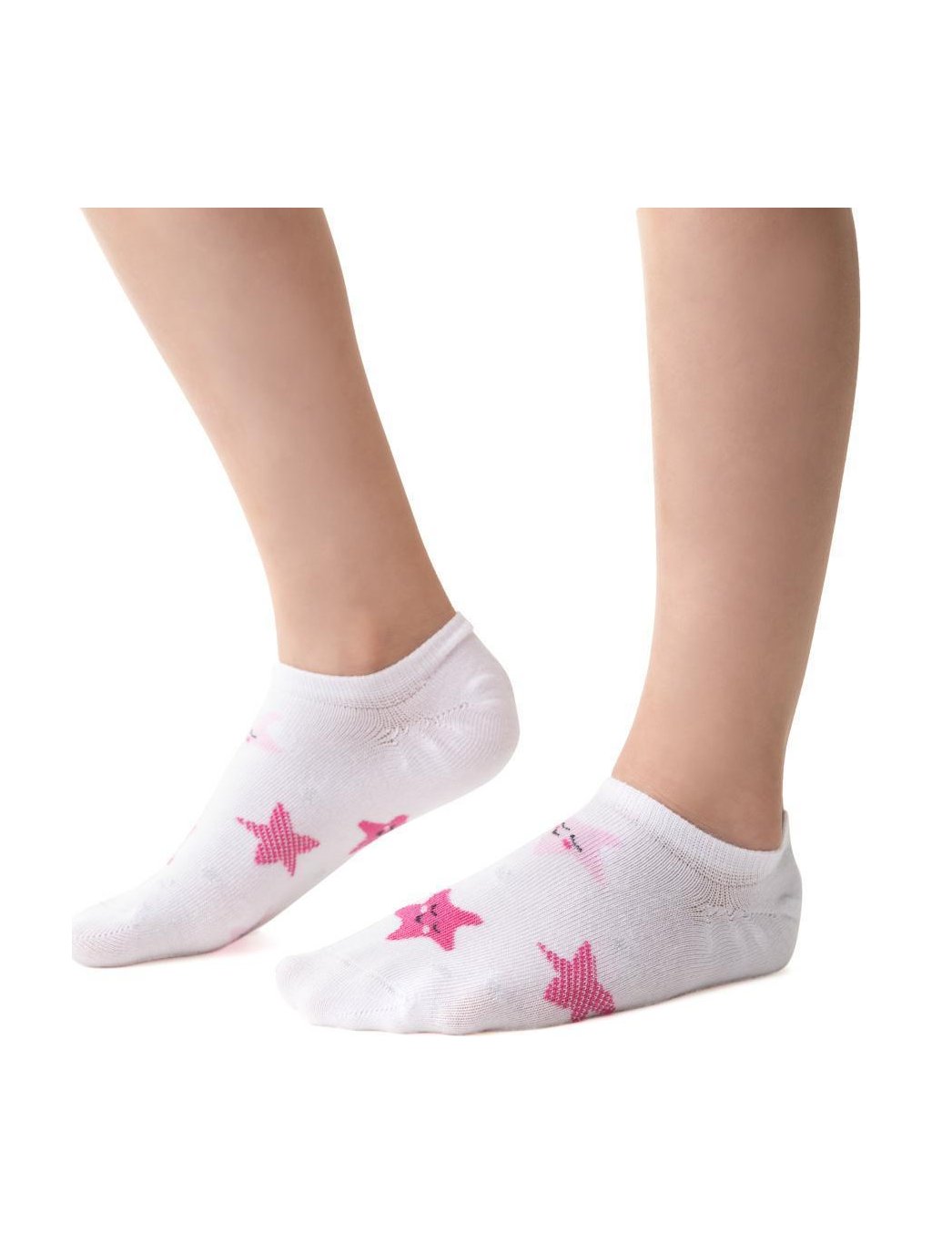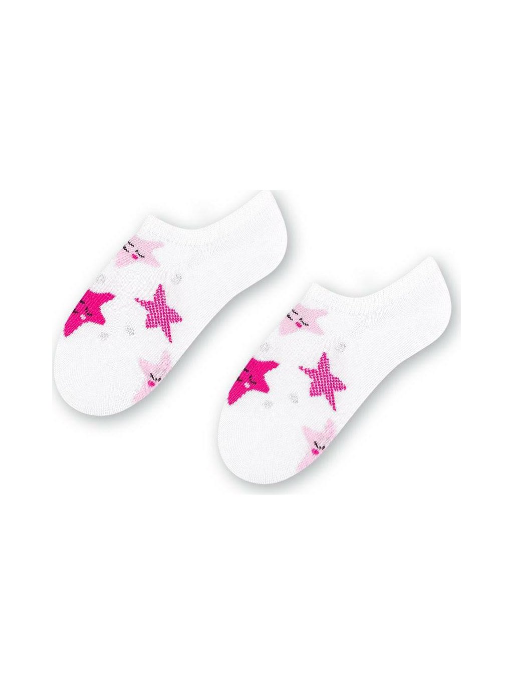 BÍLÉ DÍVČÍ BAMBUSOVÉ PONOŽKY S RŮŽOVÝMI HVĚZDIČKAMI ART.152