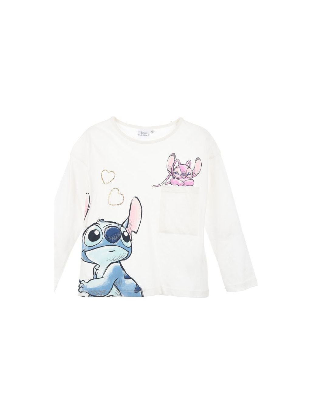 BÍLÉ DÍVČÍ TRIČKO S DLOUHÝM RUKÁVEM A KAPSIČKOU DISNEY STITCH